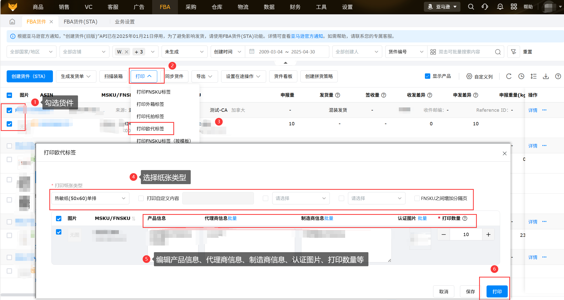 (3)打印欧代标签