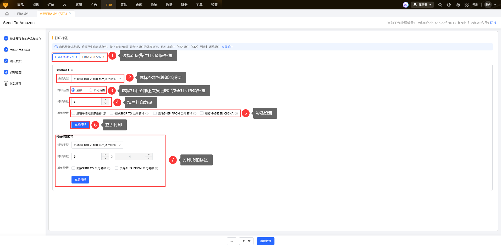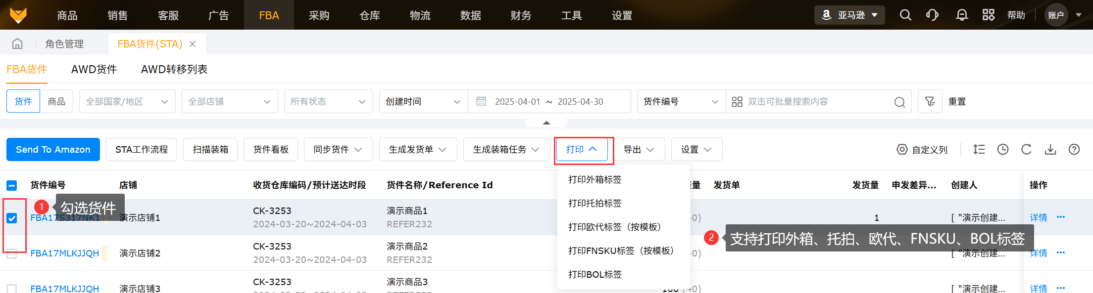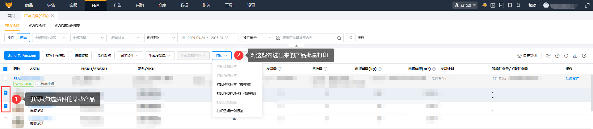 FBA货件(STA)具体影响如下:FBA货件(STA):列表图片、详情、打印FNSKU标签、欧代标签。