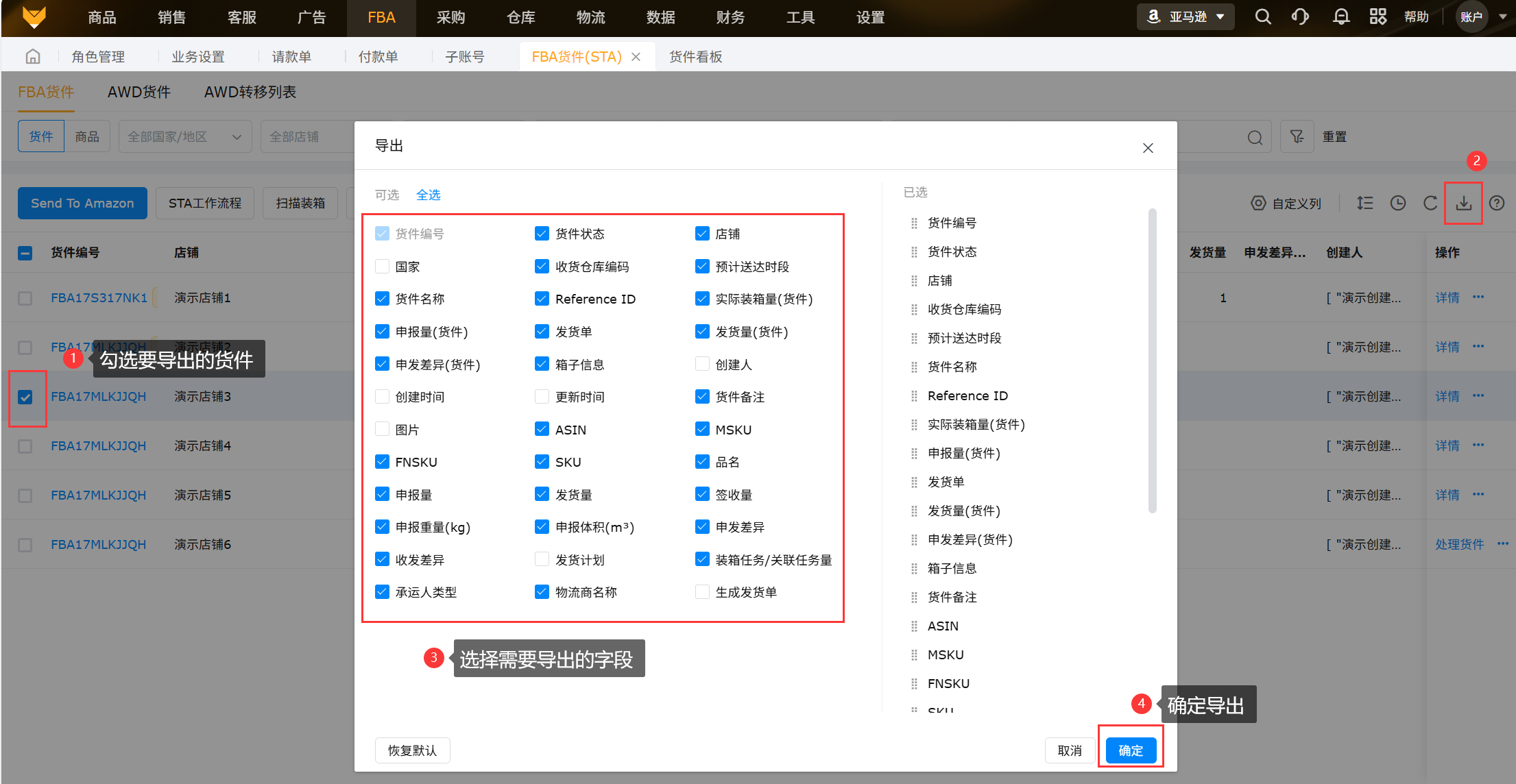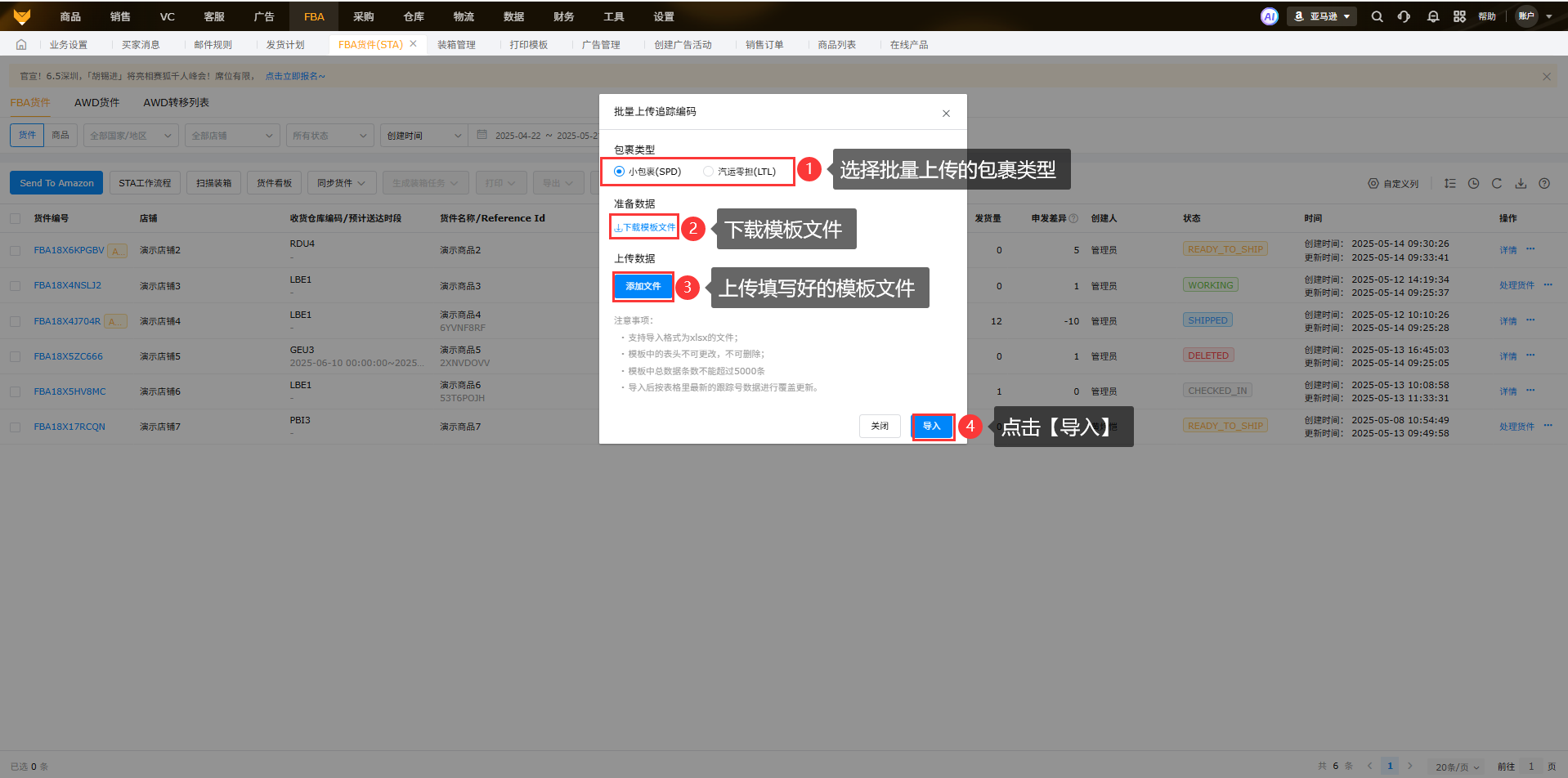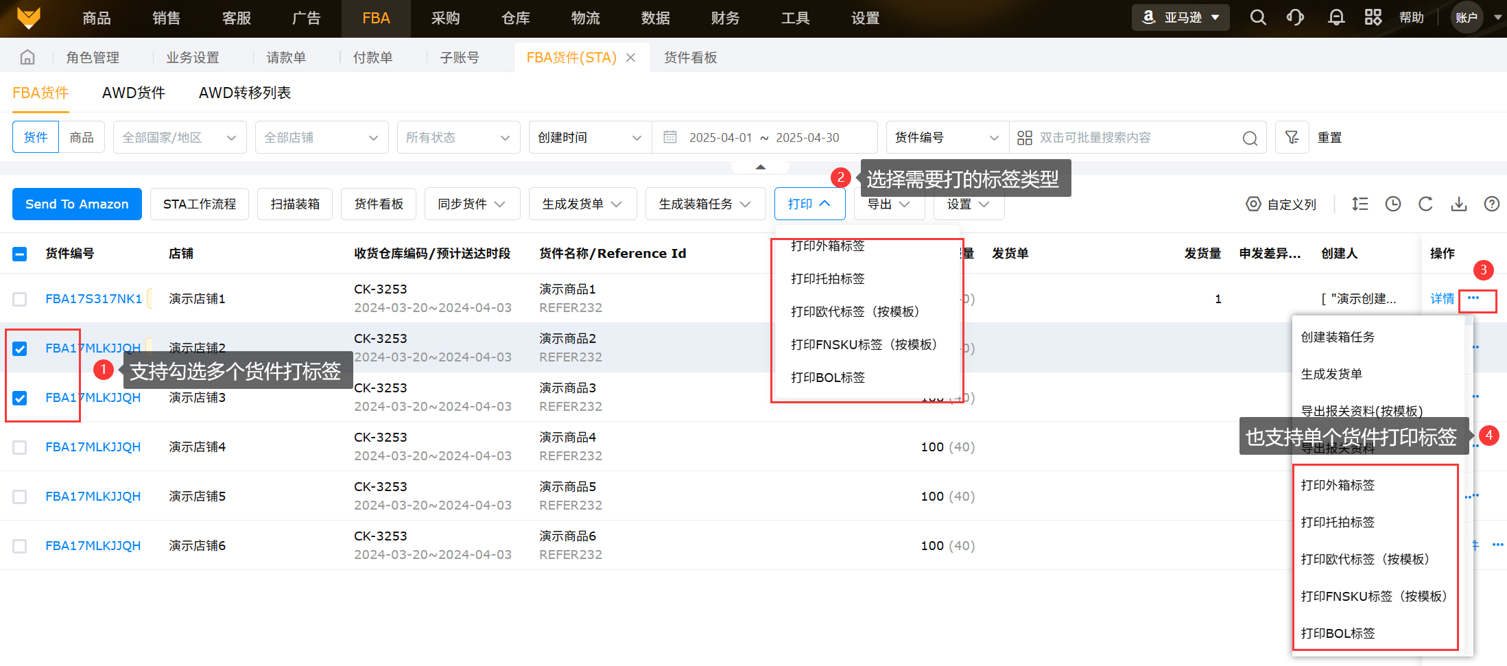 FBA货件(STA)具体影响如下:FBA货件(STA):列表图片、详情、打印FNSKU标签、欧代标签。