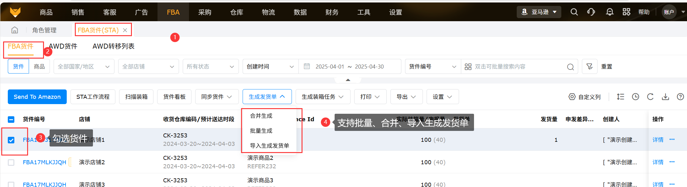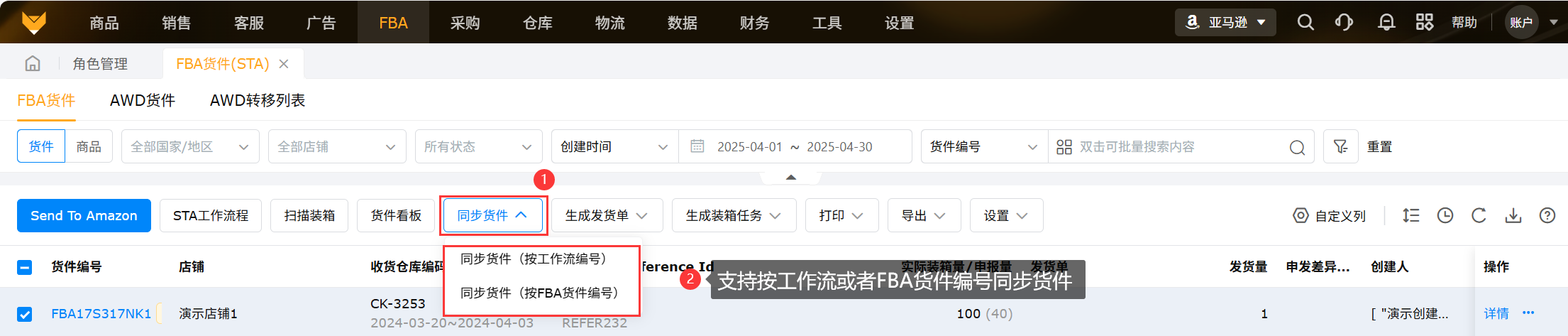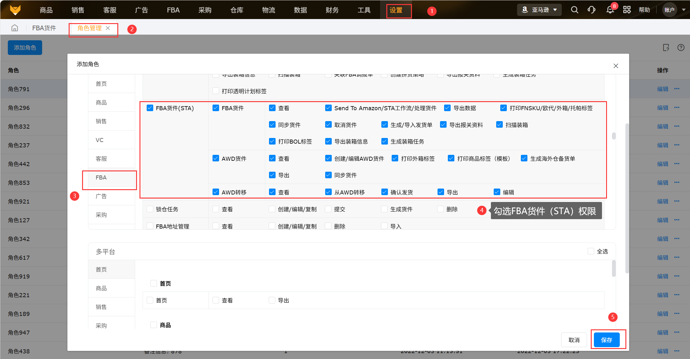 在【设置】-【角色管理】中勾选开启FBA货件(STA)权限。