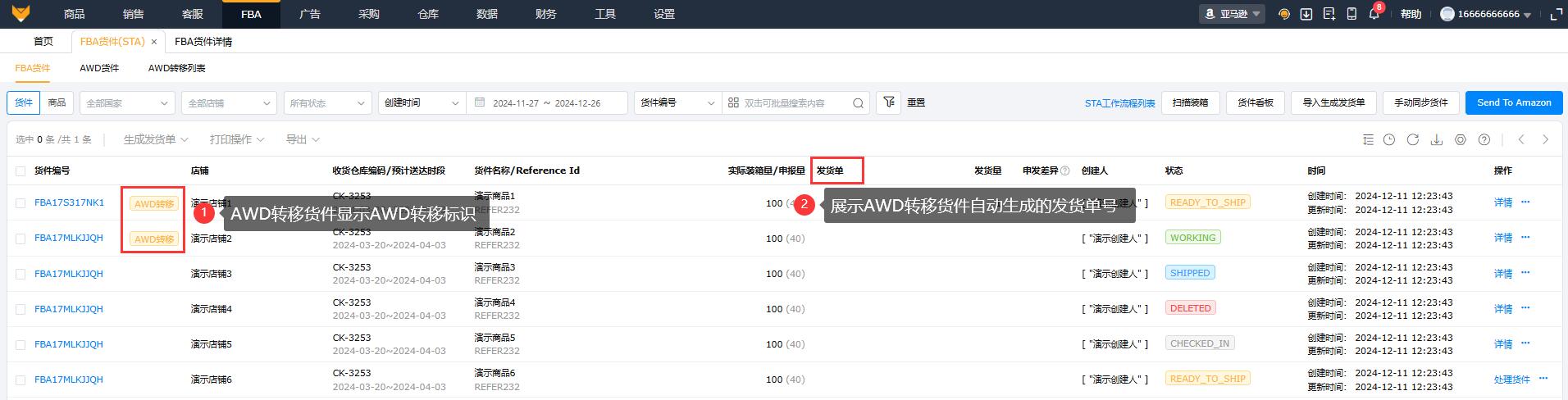 货件有AWD转移标记,货件里面的产品都配对了本地的SKU,货件状态为SHIPPED\IN TRANSIT\DELIVERED\CHECKED IN\RECEIVING\CLOSED,未生成发货单的货件会自动生成发货单;