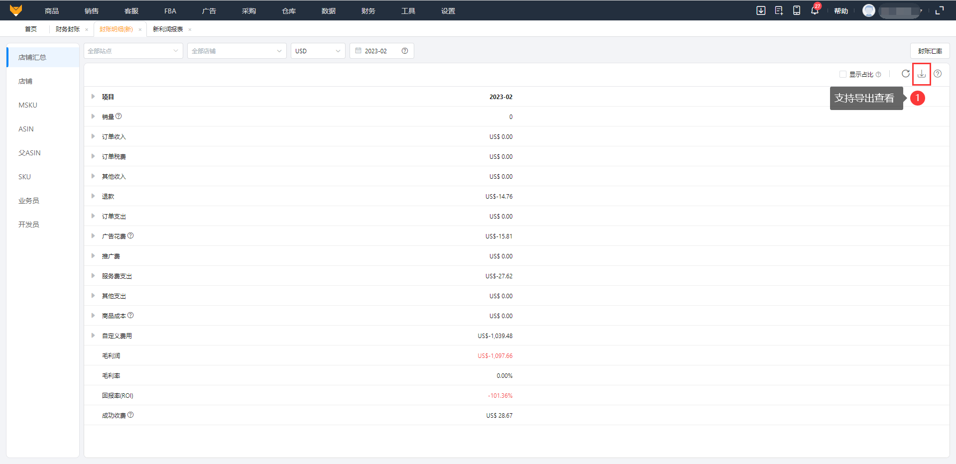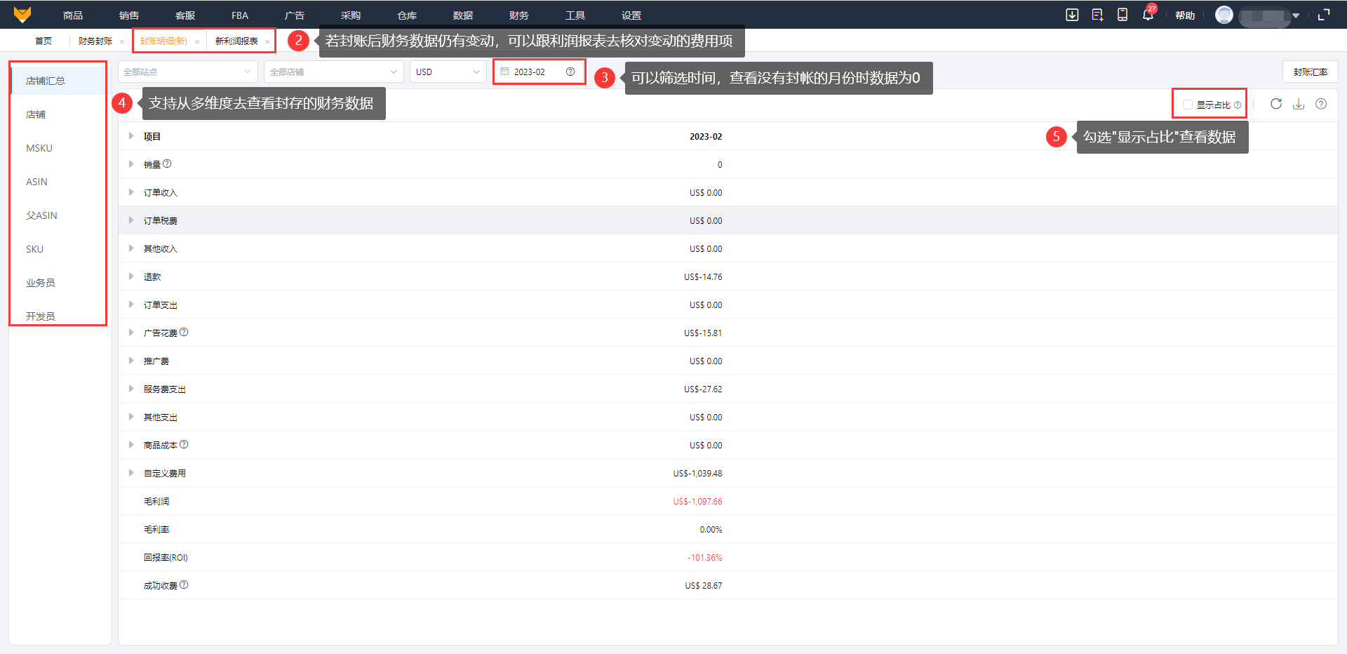 A2:如果子账号只拥有部分店铺权限,查看封账时总毛利润还是显示的全公司的利润,点击封账明细查看的是只有自己有权限的店铺的利润。