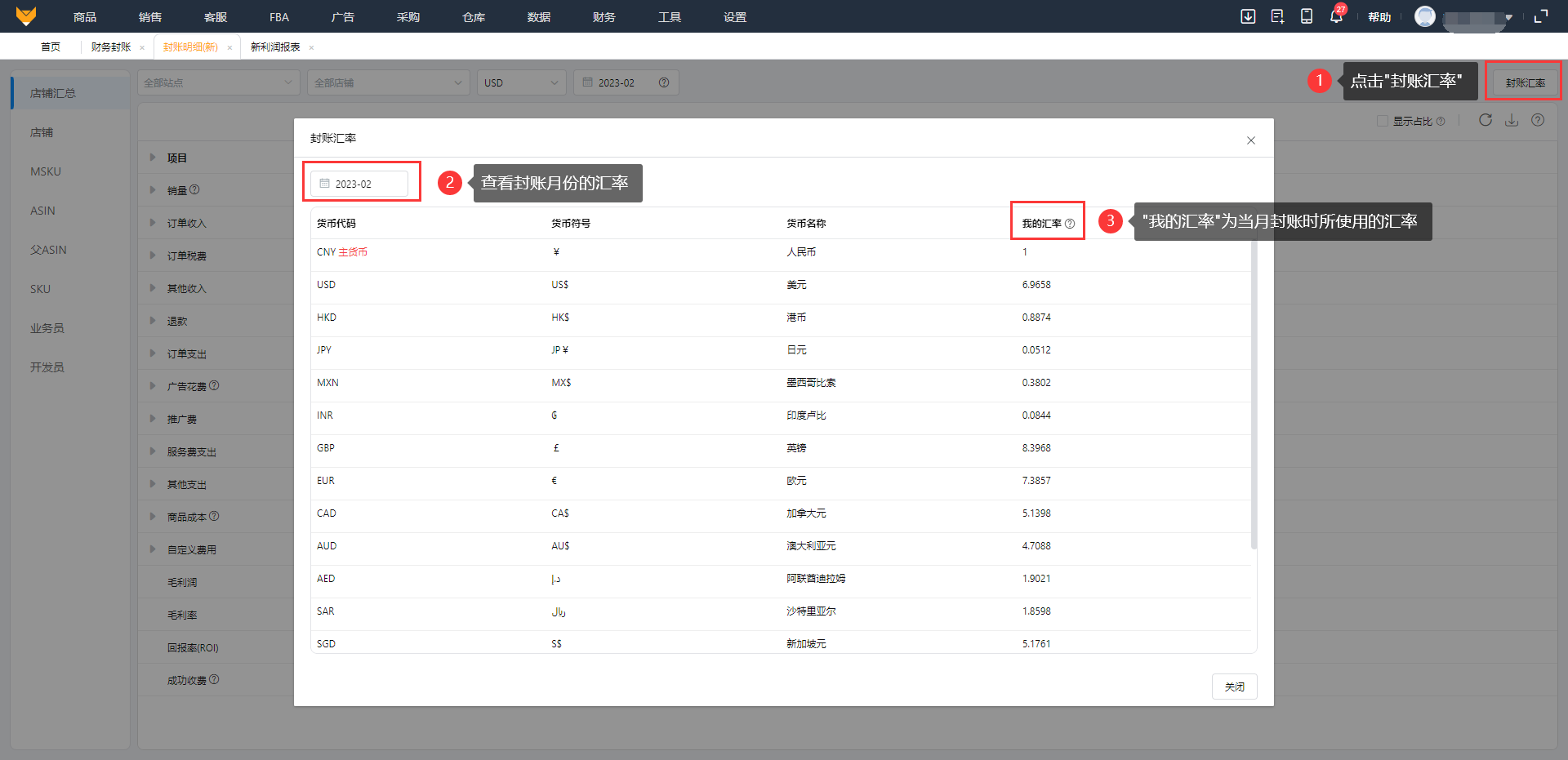 支持查看封账时的汇率。
