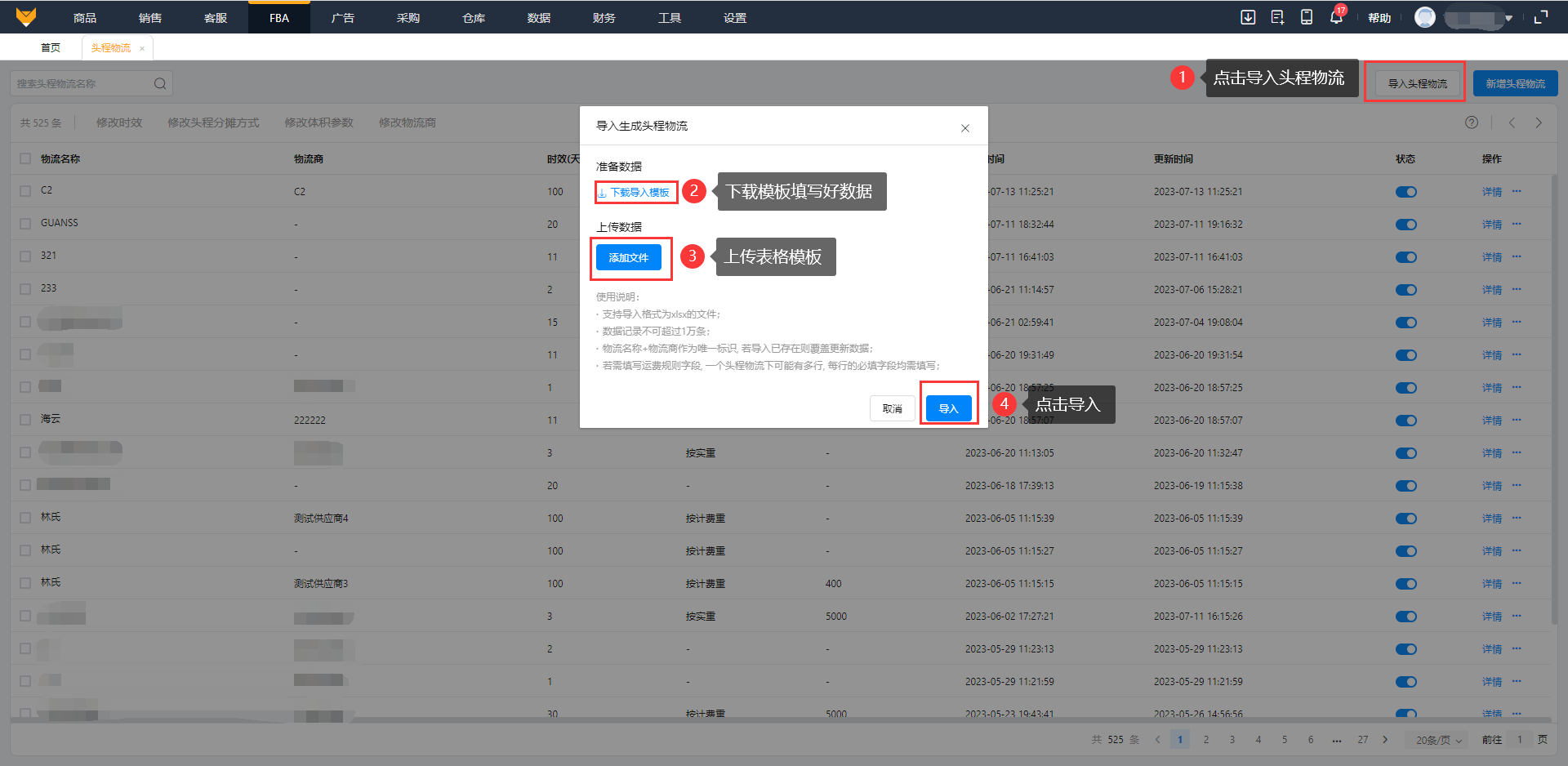 物流名称+物流商作为唯一标识, 若导入已存在则覆盖更新数据;