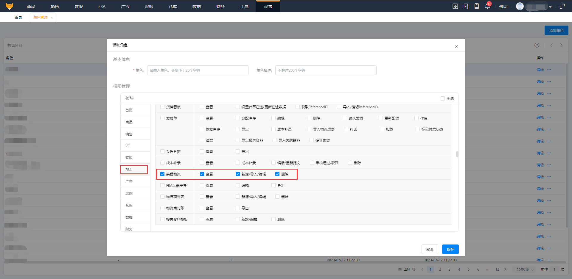 主账号可以在【设置】>【角色管理】给子账号设置【头程物流】的查看、新增/导入/编辑、删除权限。