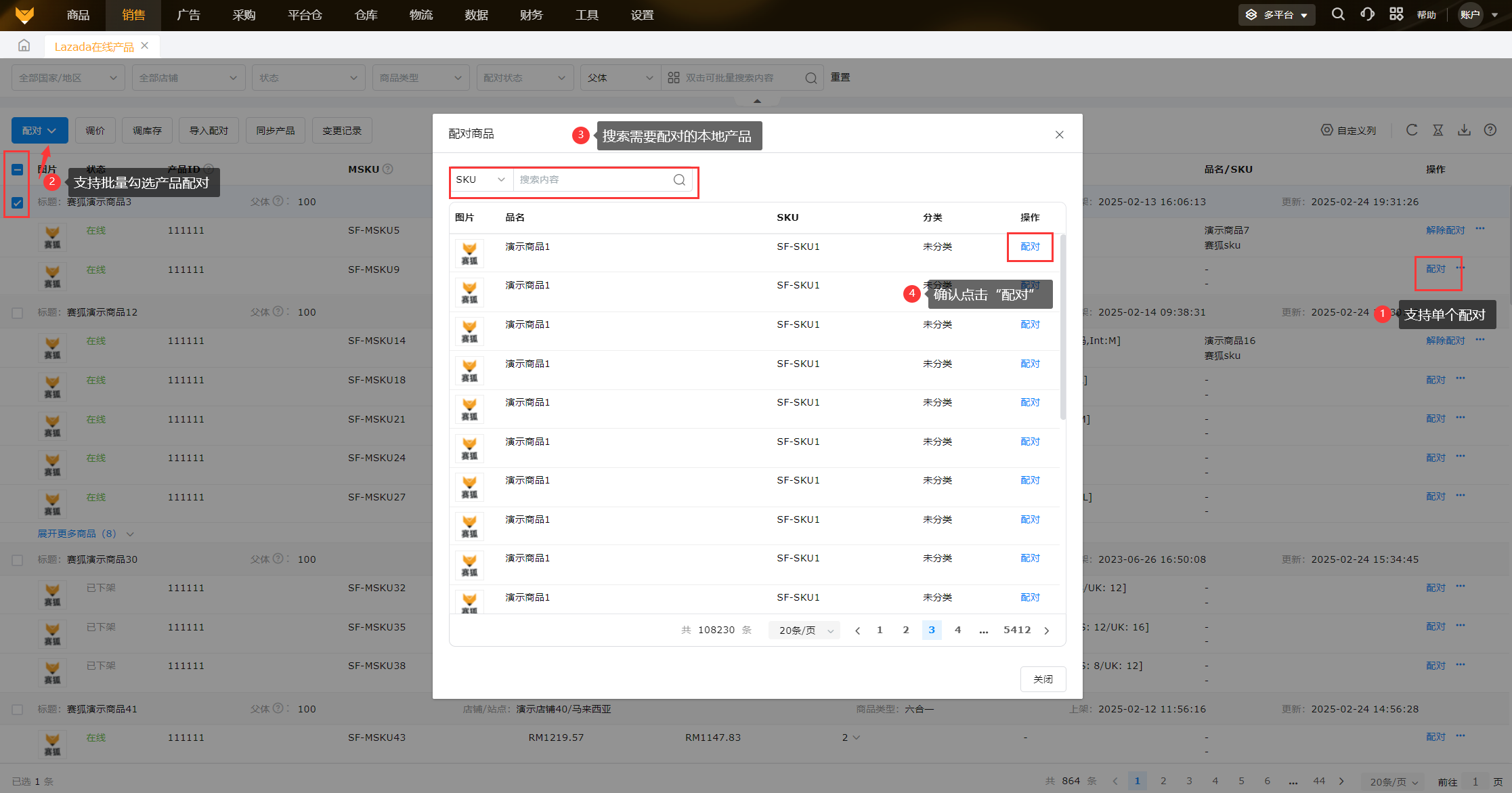 支持配对本地SKU信息,便于后续本地SKU库存扣减出库。