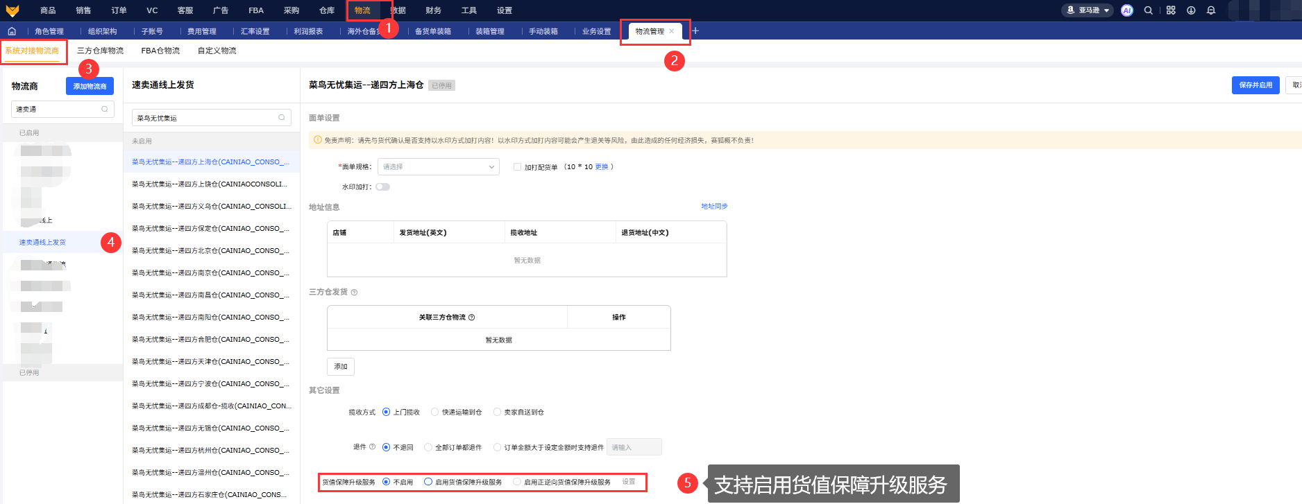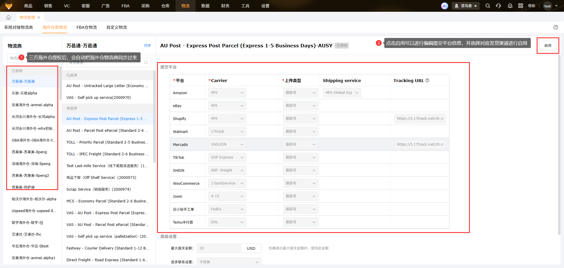 2、海外仓物流设置