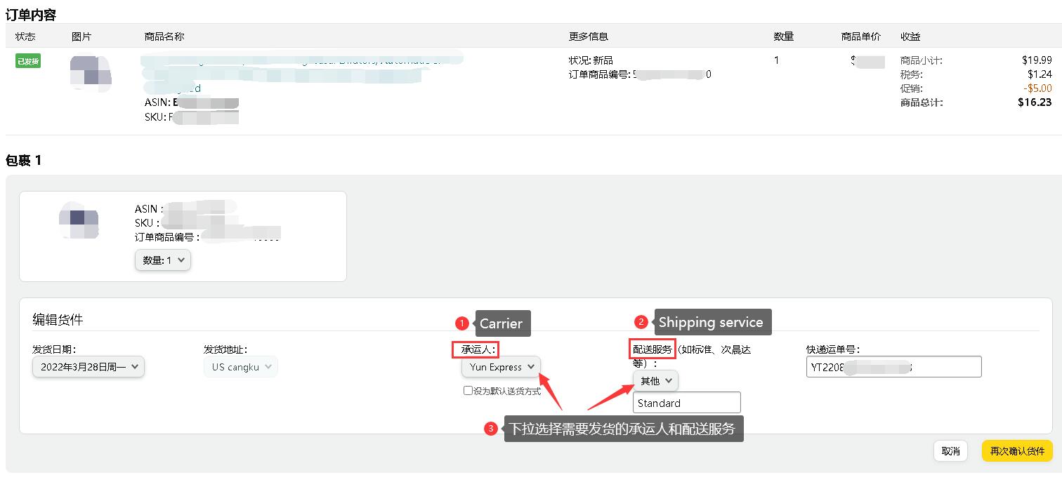 承运人和配送服务如果不清楚具体设置,可以通过亚马逊后台数据来源确认:订单<管理订单<查看卖家自配送订单详情页: