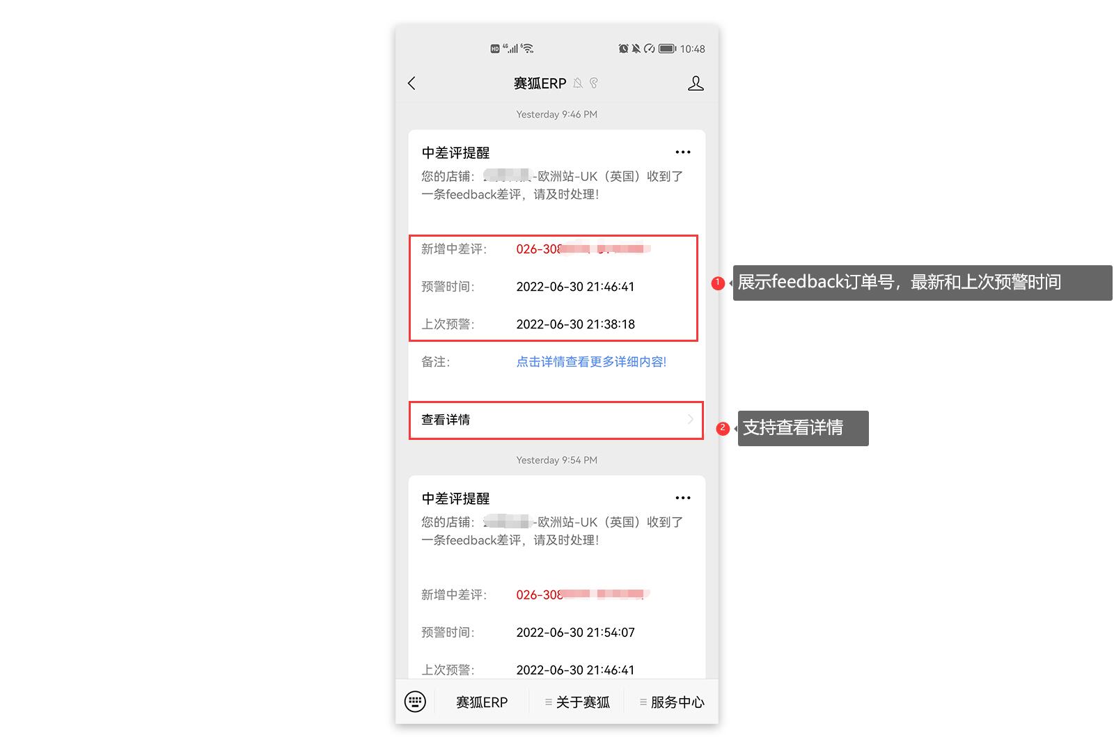 查看Review差评提醒、测评退款/退货、跟卖监控、店铺授权过期等消息