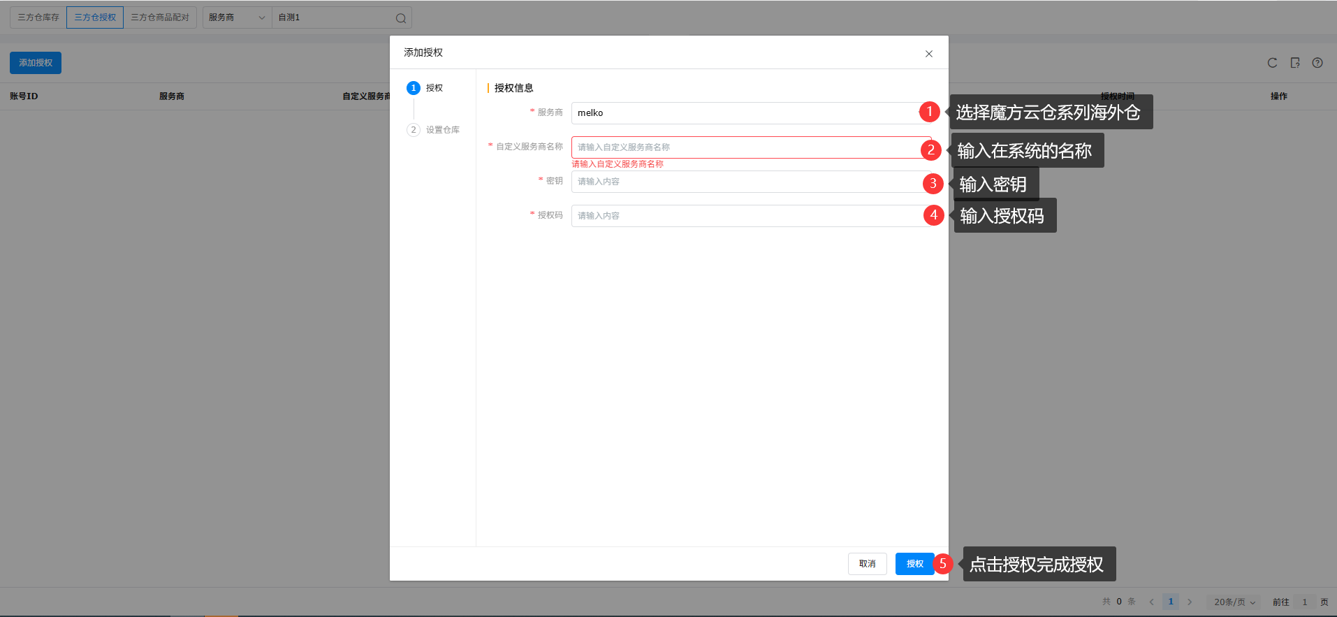 1、三方仓授权