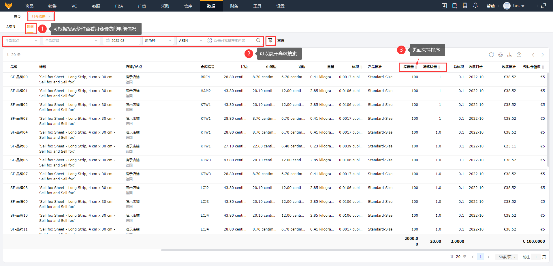 A2:在数据-月仓储费报告-明细里面可以查看。