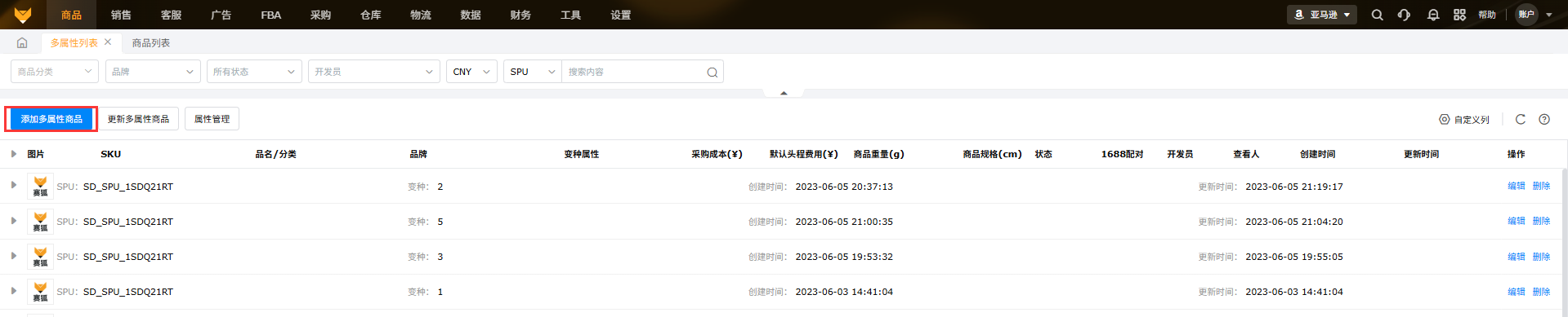 所有创建的多属性商品都展示于此,易于直接方便的对多属性商品进行管理。
