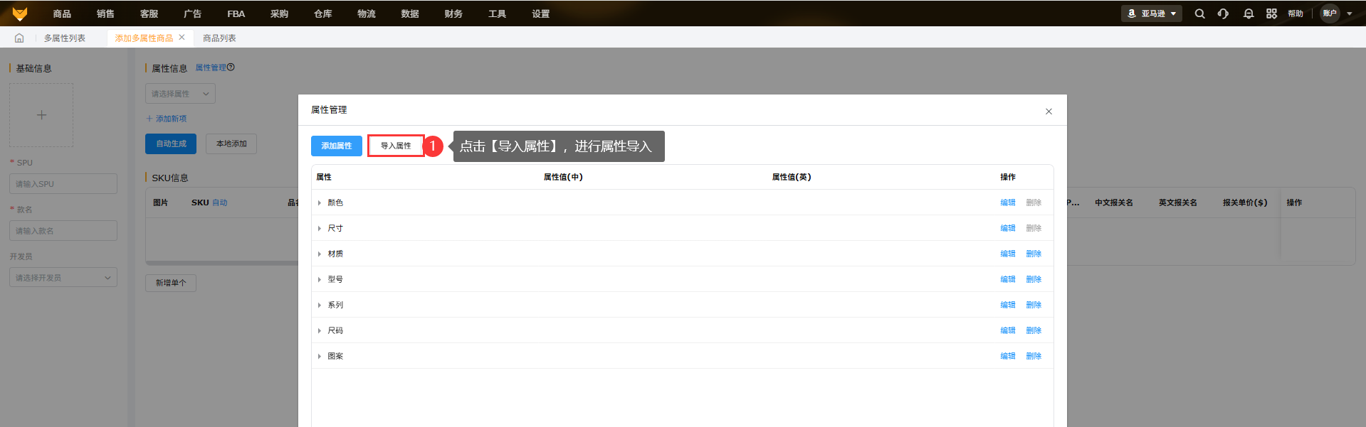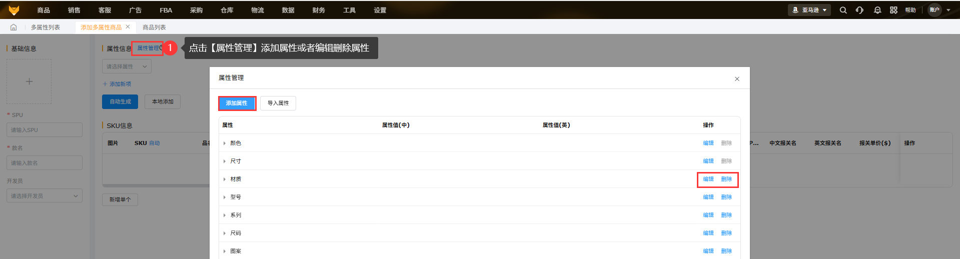(1)可设置属性和属性值,一个SPU最多包含10种属性,一个SPU最多可包含1024个SKU。