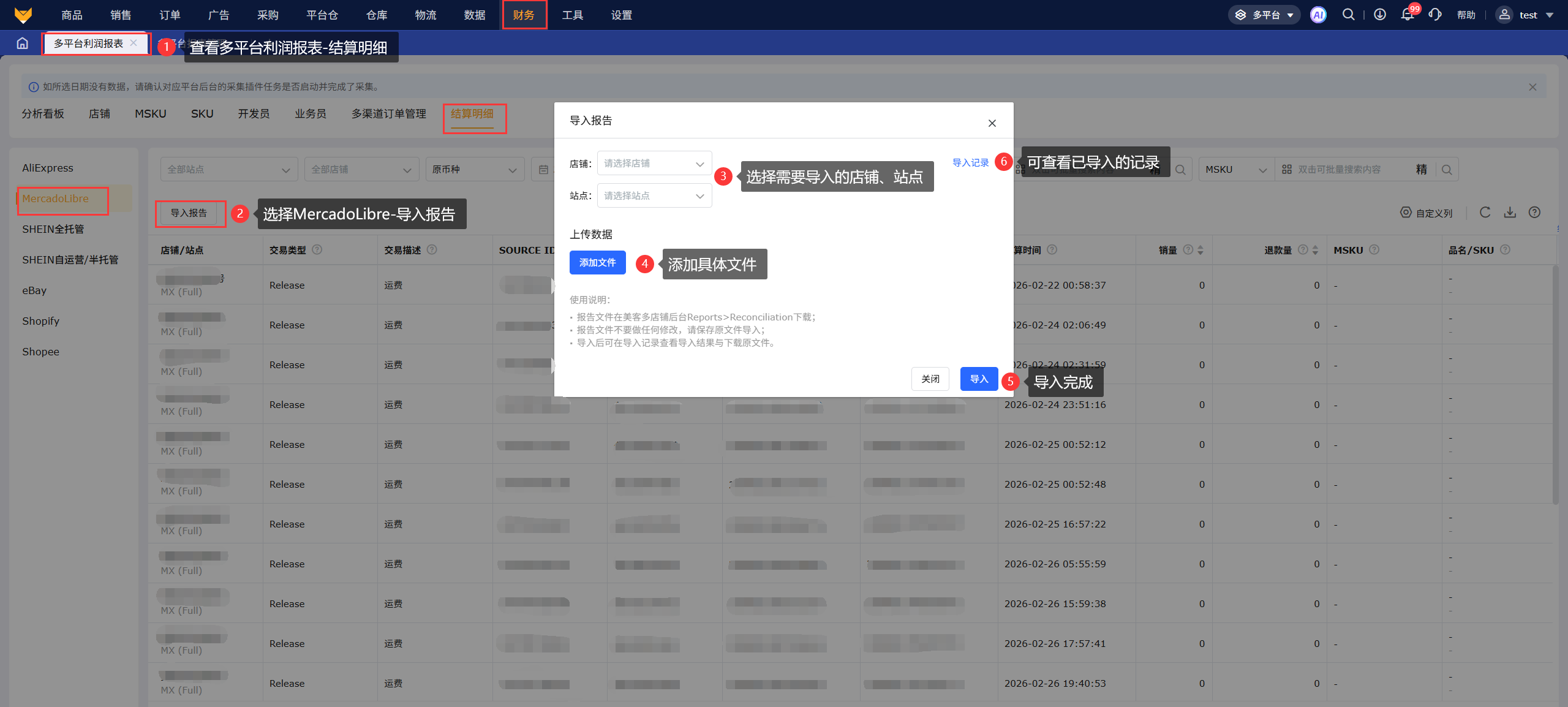 支持MercadoLibre直接使用后台导出文件,导入系统生成利润数据