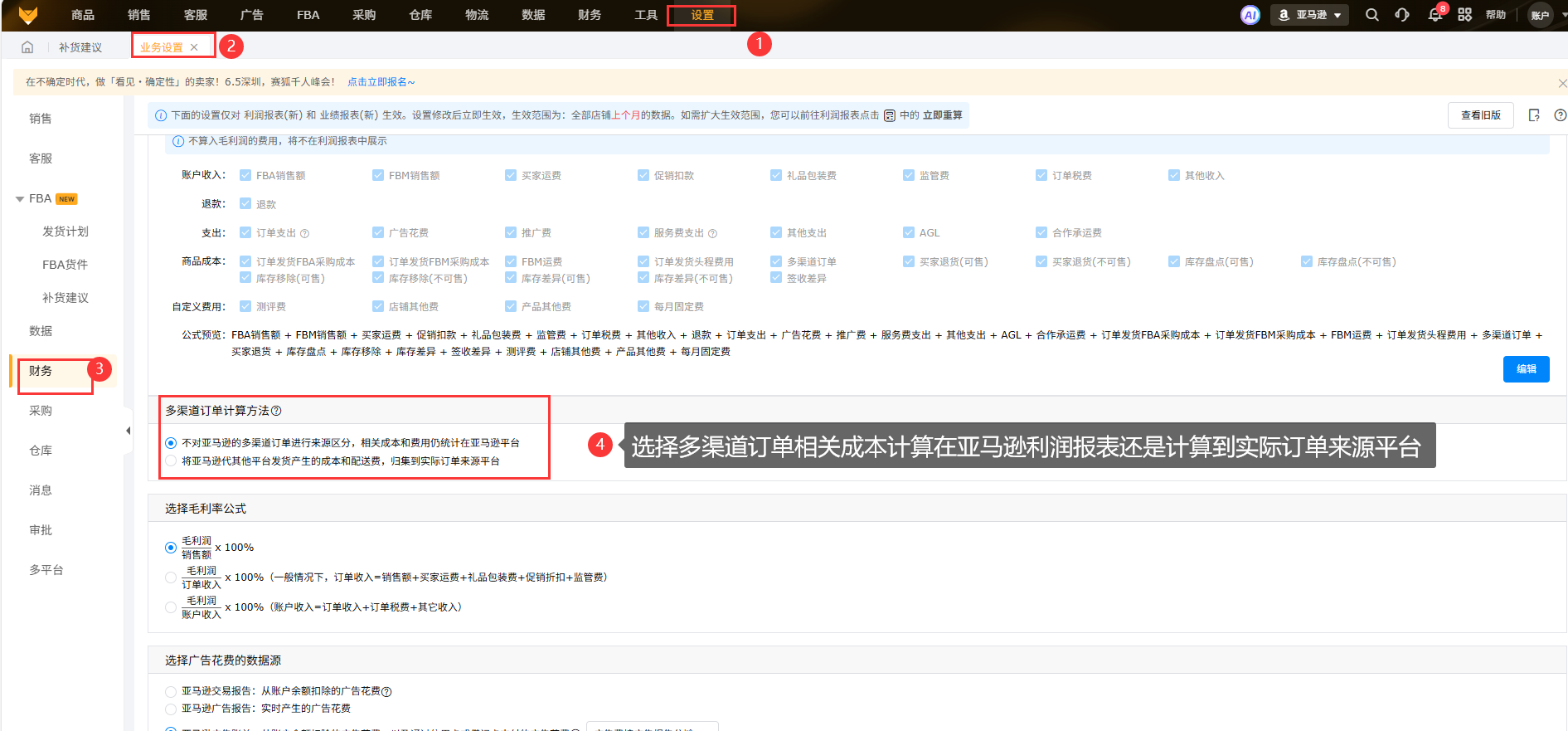 选择多渠道订单产生的成本和配送费归集到实际订单来源平台,影响全部店铺上个月的数据。