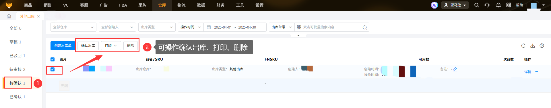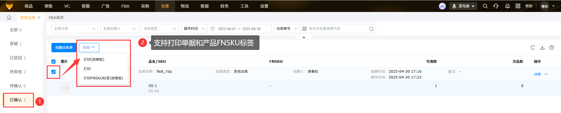 已确认的出库单,可以操作打印单据信息和产品标签。
