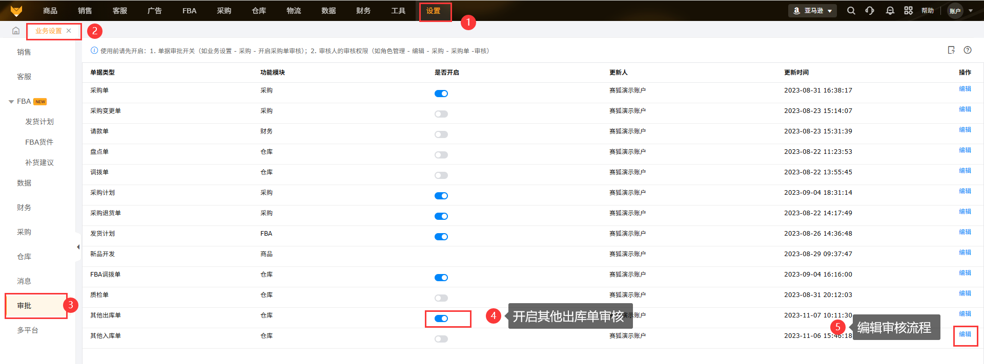 3.1【设置】-【审批设置】,开启其他出库单审核;
