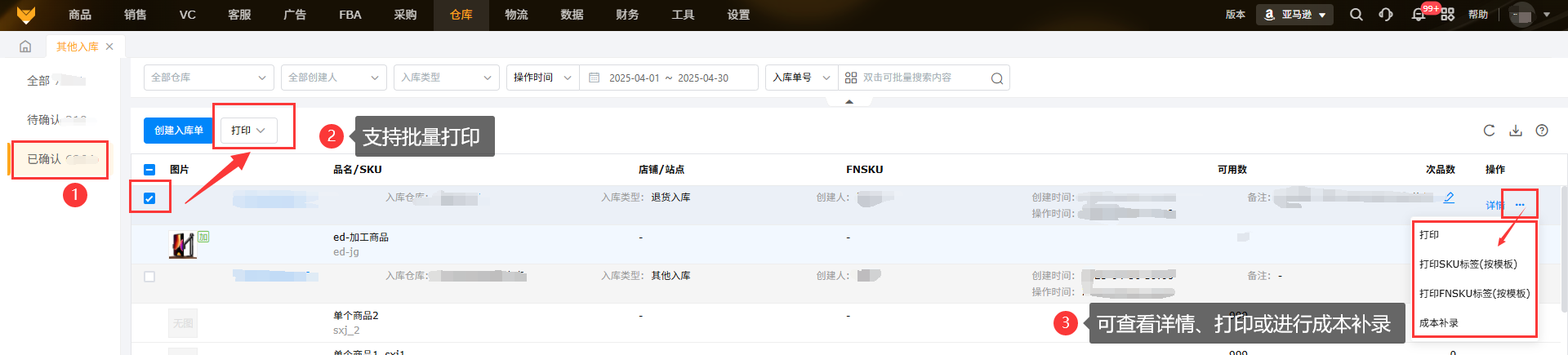 3、入库单操作