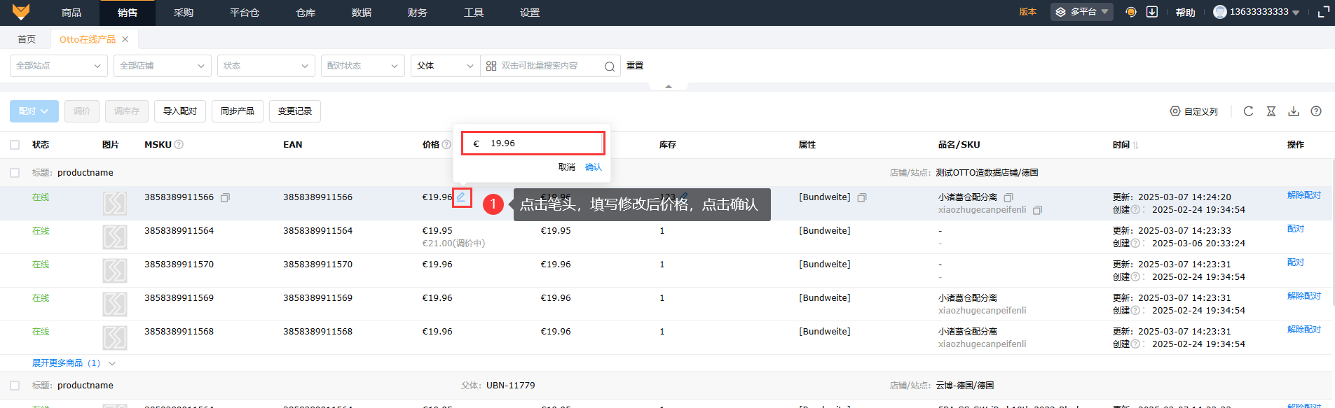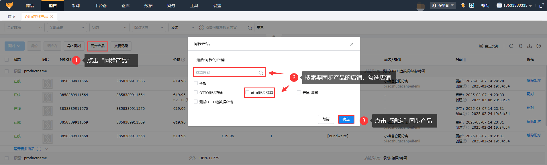 2、店铺添加上权限,可以在Otto在线产品中手动同步产品,刷新页面再查看数据是否更新。