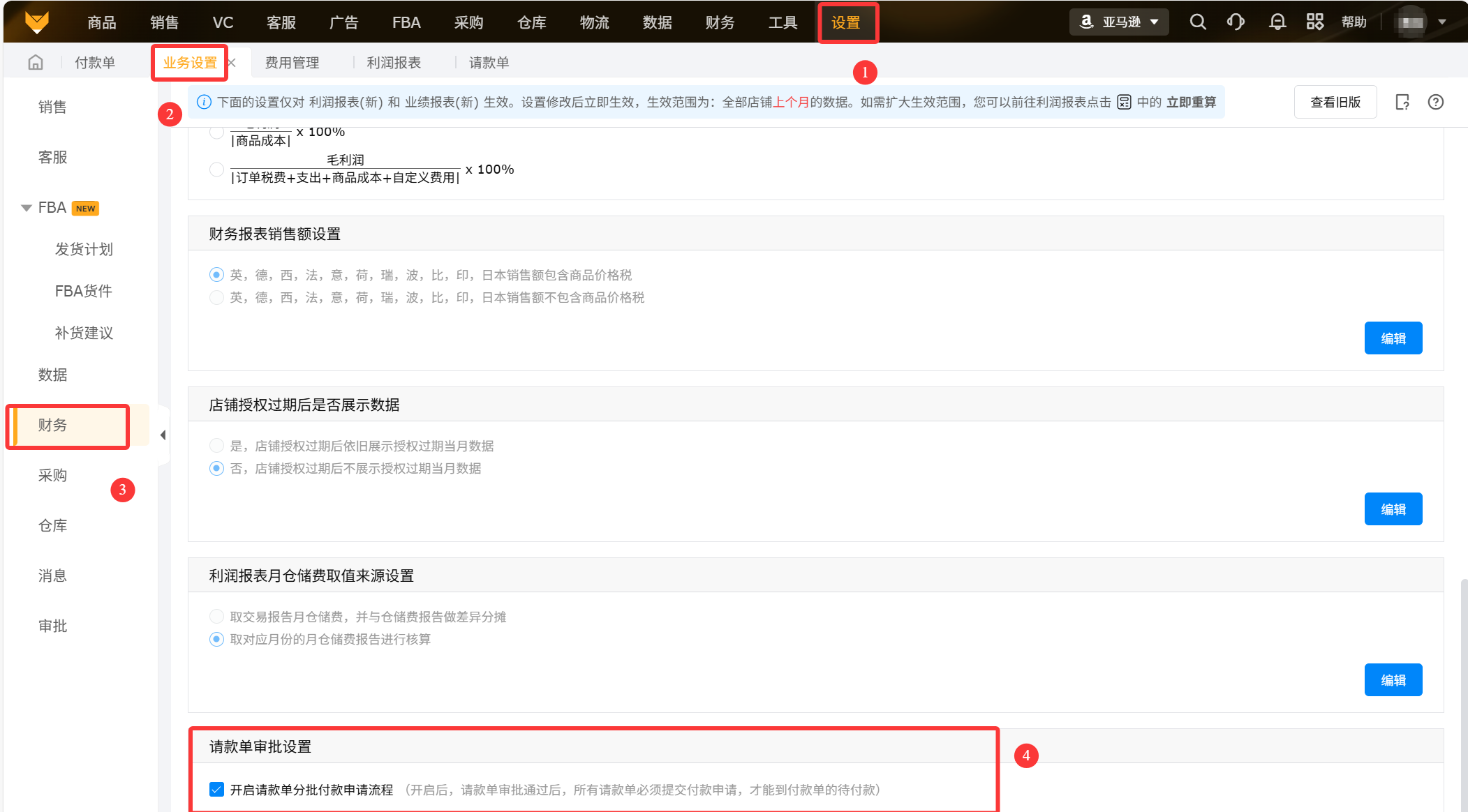 管理员需要给角色分配请款的权限,在【设置】>【角色管理】进行分配,勾选相应的权限。