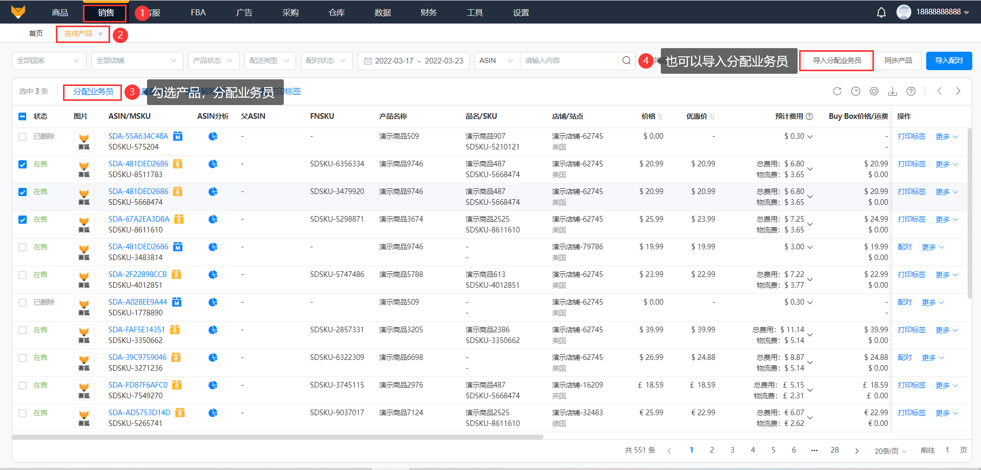 1.2设置业务员:在【销售】>【在线产品】,分配业务员。