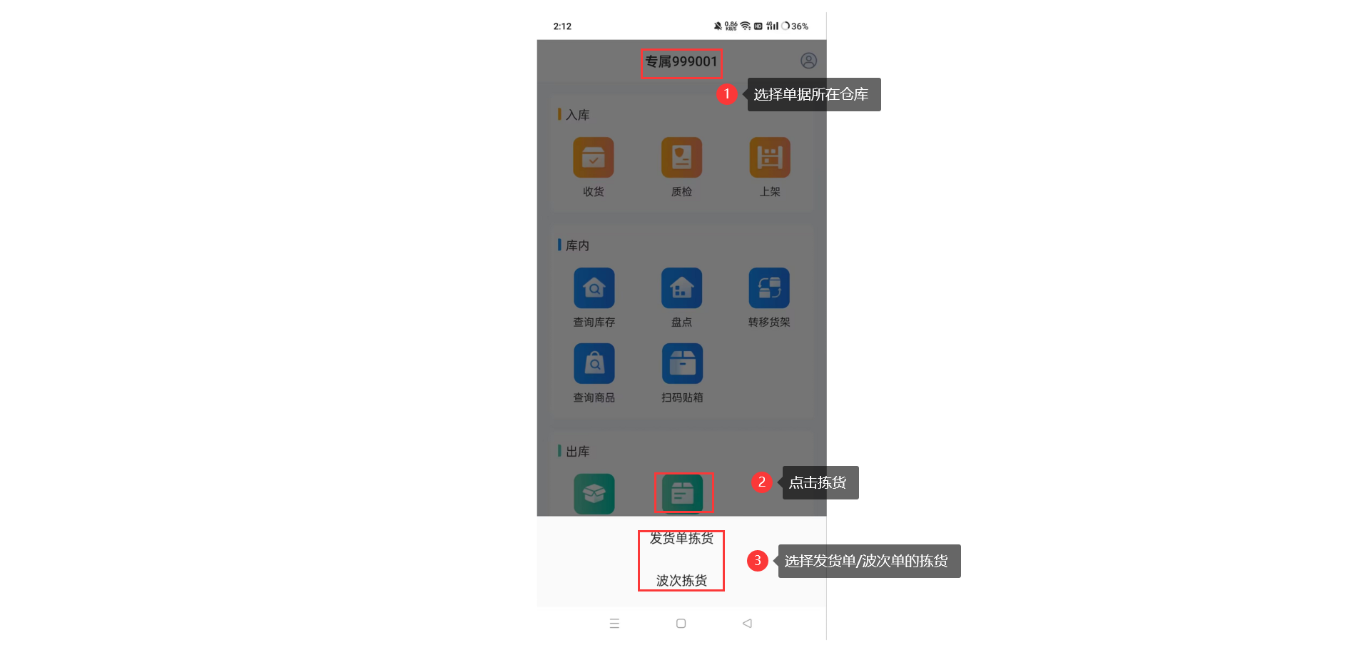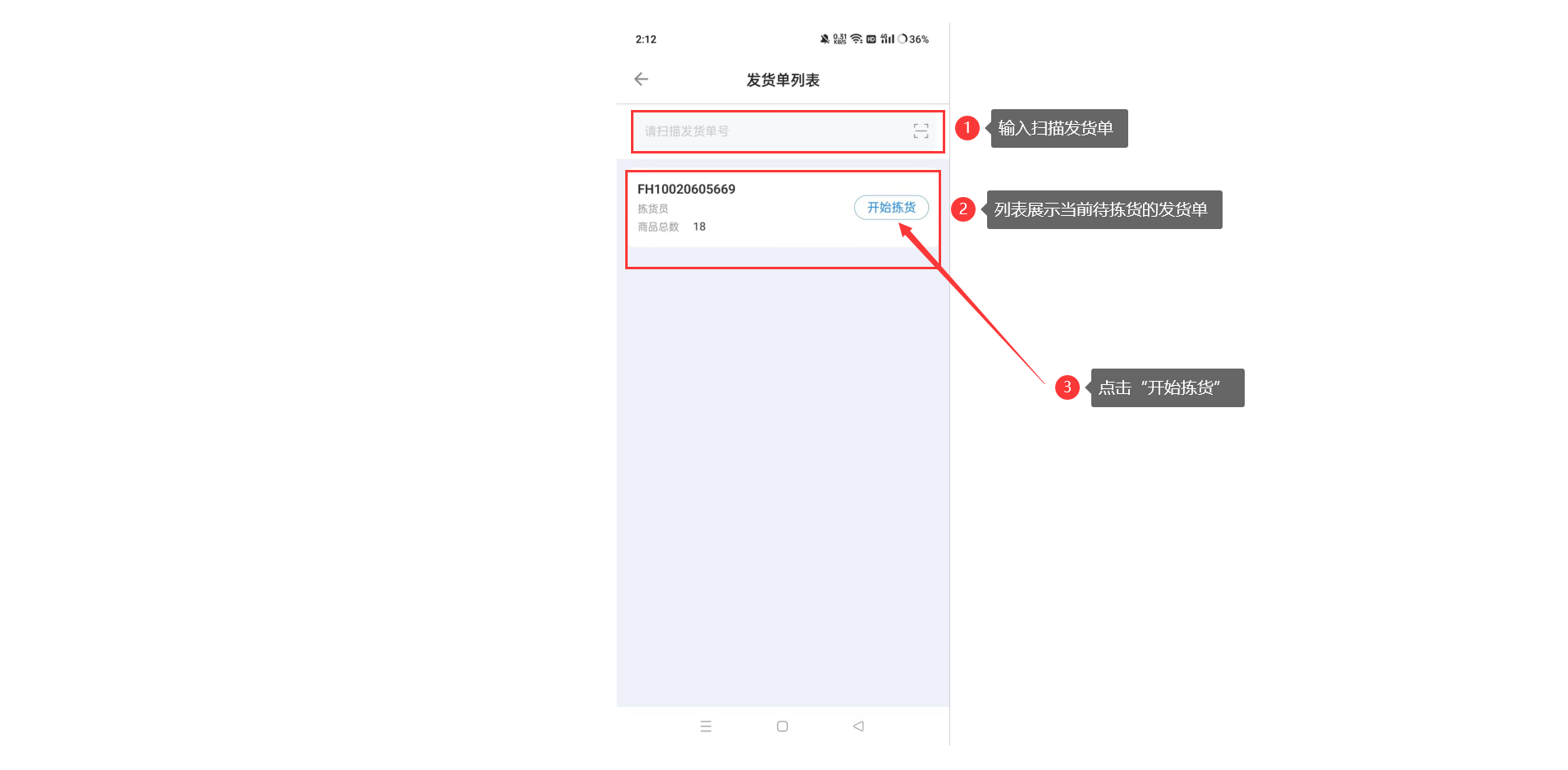 输入和扫描单据,支持在手机端完成对发货单/波次单的拣货操作。