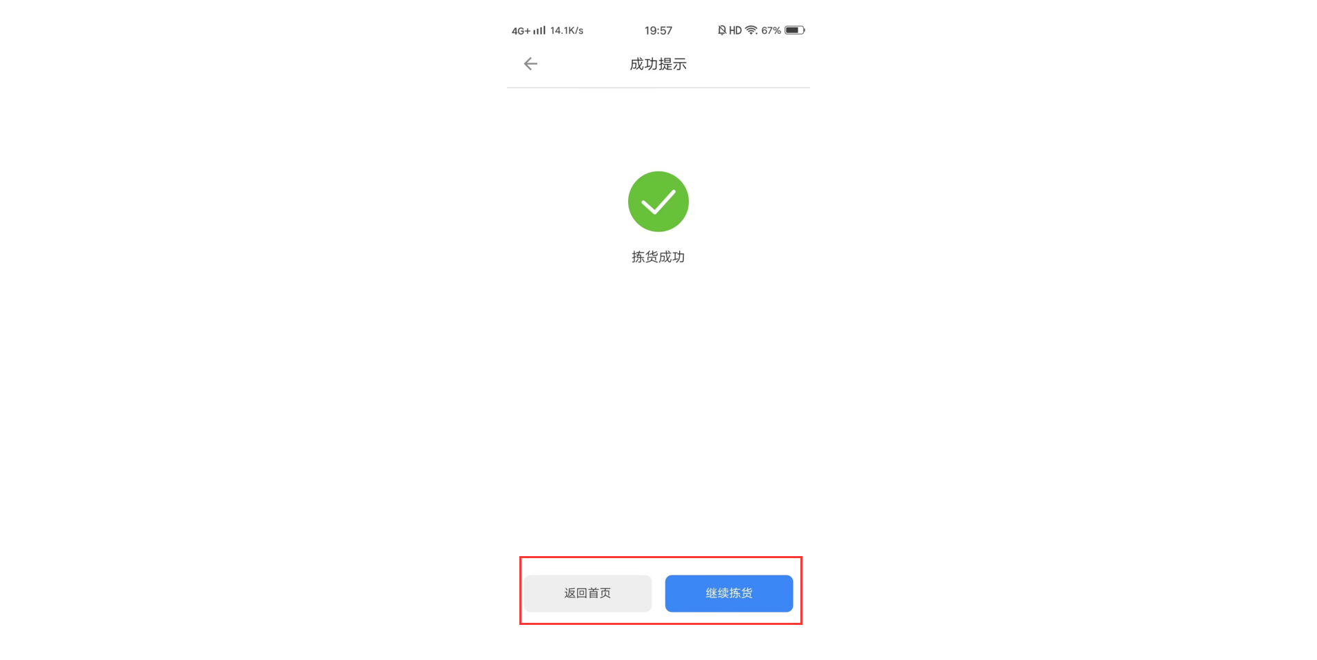 当波次单中所有包裹都拣货完成后,波次单自动完成拣货,可以选择返回首页或者是继续完成其他波次单拣货