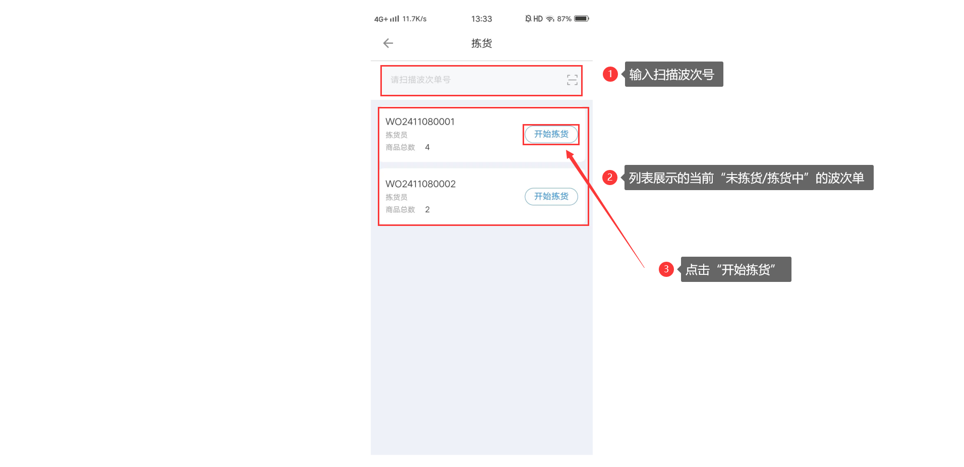 2、开始拣货