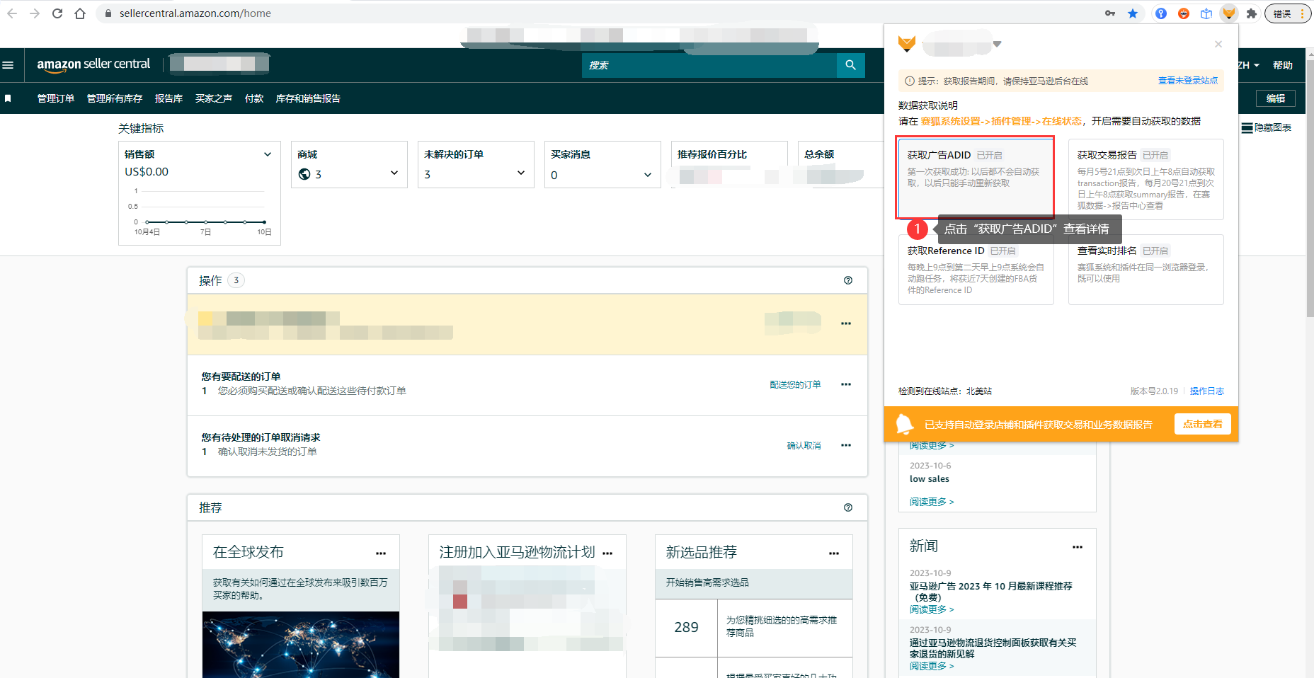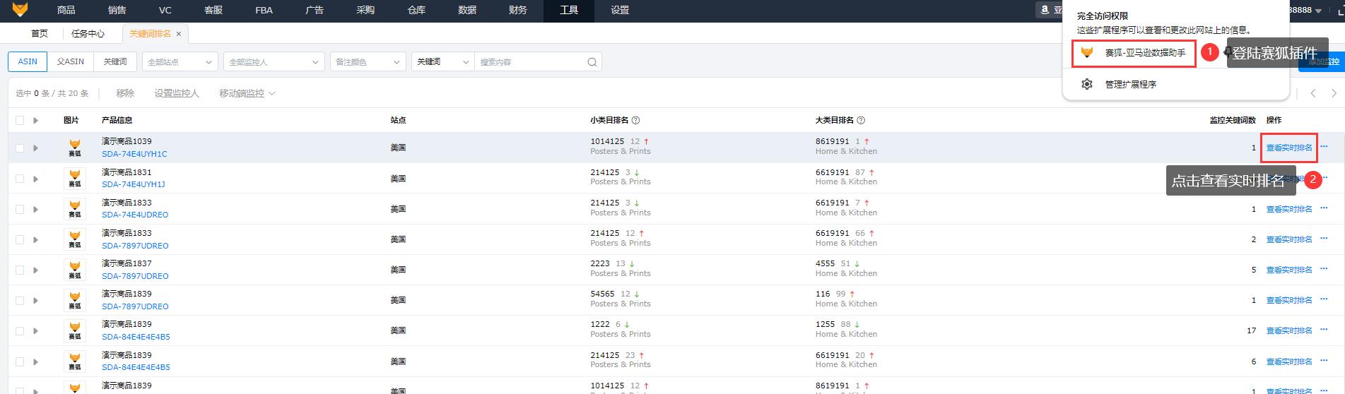 在打开赛狐系统的浏览器上安装插件,并且登录插件。