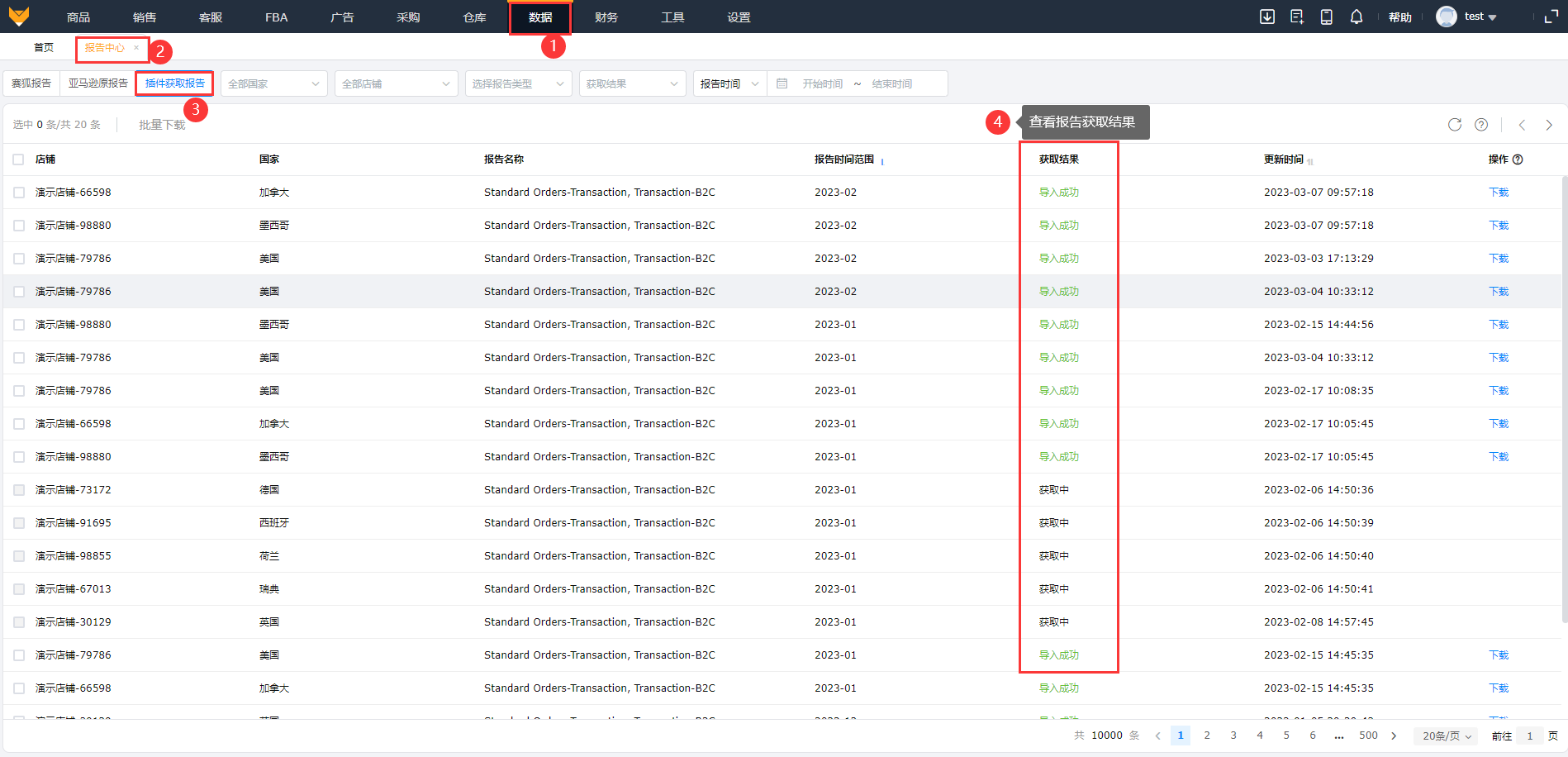 注意:只有店铺和插件都是在线状态才能成功获取报告。