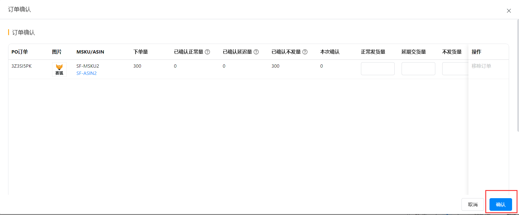 (1)确认时,正常发货量+延迟发货量+不发货量要等于本次确认量,如果不相等,则提示“正常发货量+延迟发货量+不发货量之和要等于本次确认”