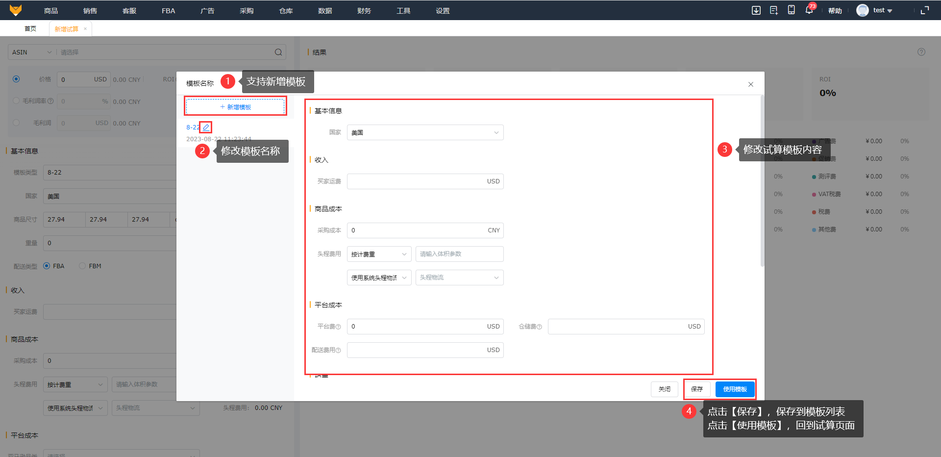 (1)当试算的基础数据比较固定时,可以创建试算模板,后续就可以选择模板快速填充试算信息。