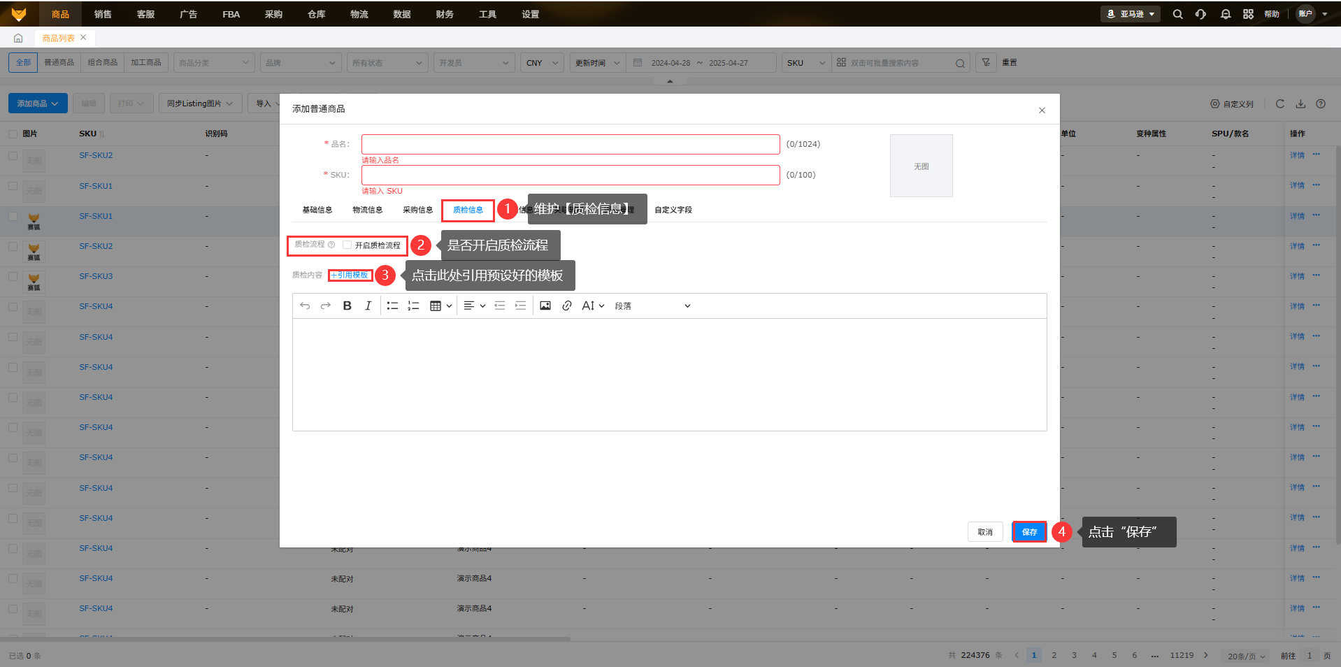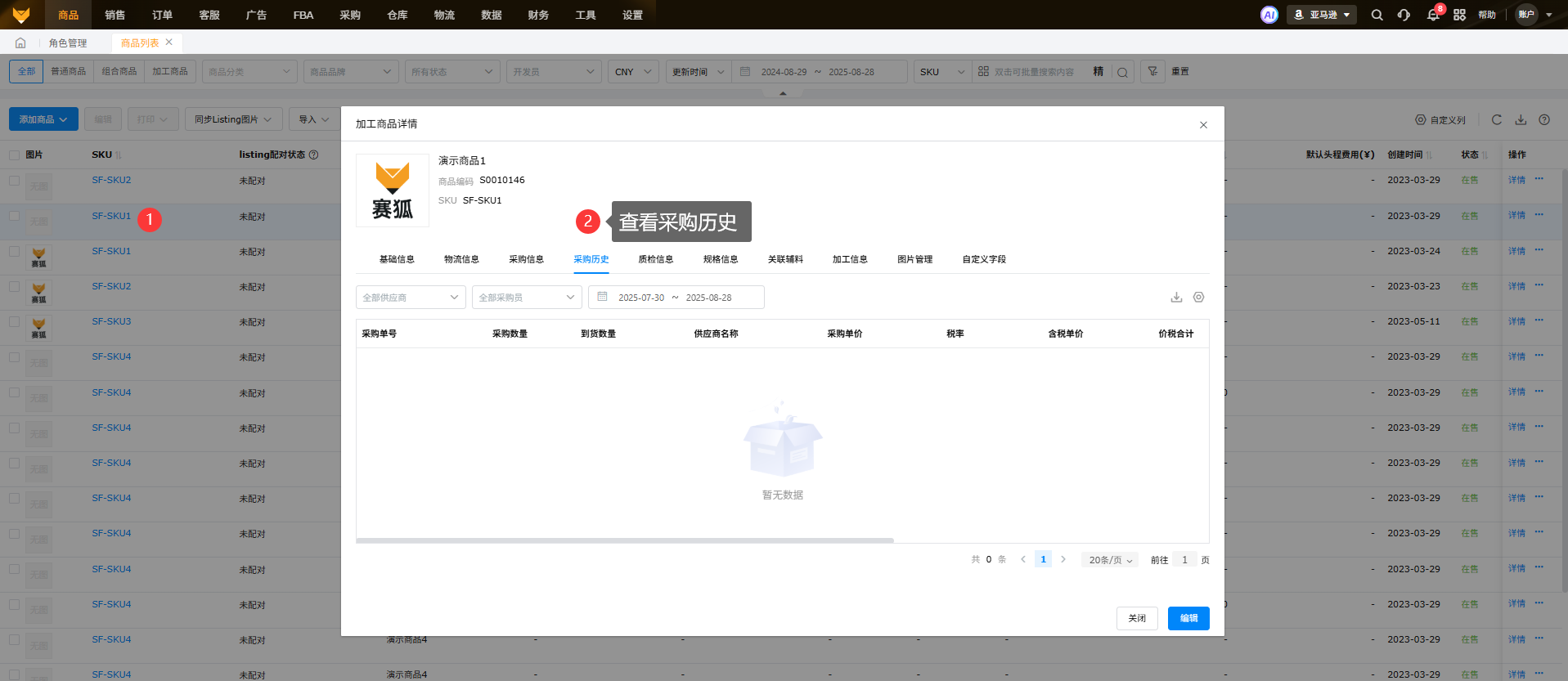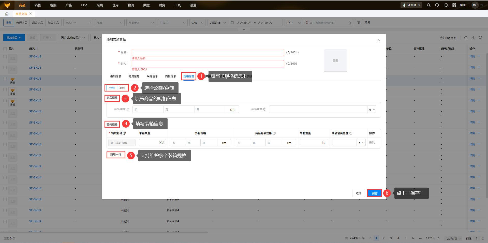 商品列表是对本地商品基本信息的统一管理,维护品名、SKU、物流信息、采购信息等基本信息;