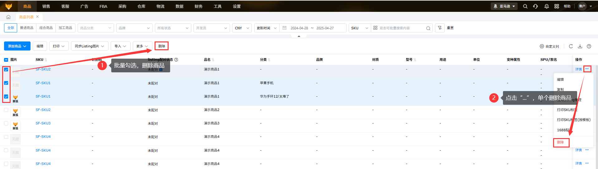 A6:1.已跟在线产品配对的商品SKU不能删除;