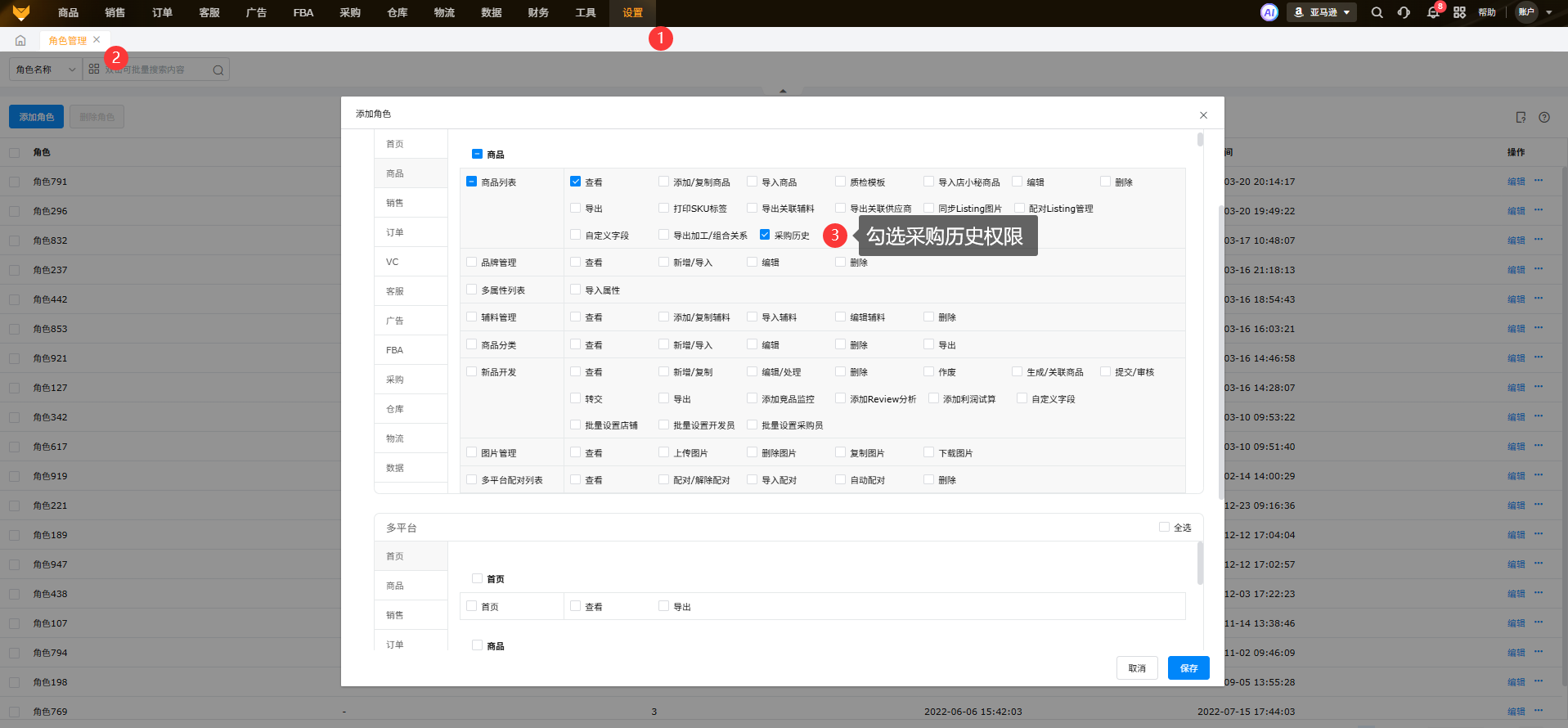 点击【设置】-【角色管理】,进入添加采购历史查看权限注:需要有对应采购单仓库的权限才能在采购历史中查看历史记录