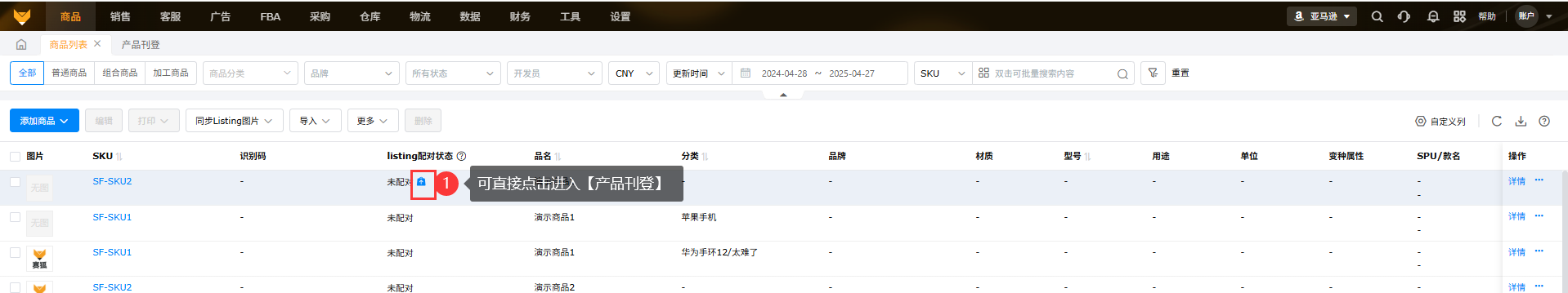 (5)点击页面中配对关系后方小图标,可直接进入【产品刊登】页面;