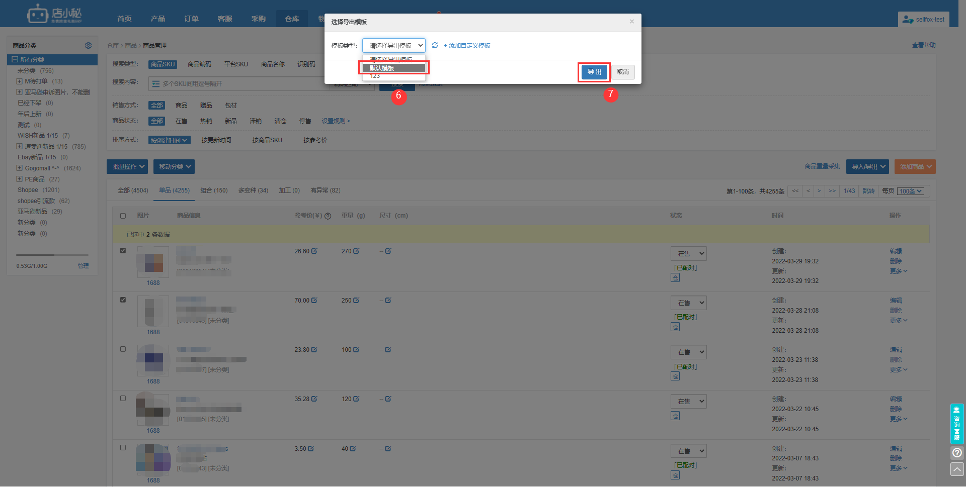 登录店小秘>仓库>商品管理>导入/导出>选择导出模板>默认模板>导出。
