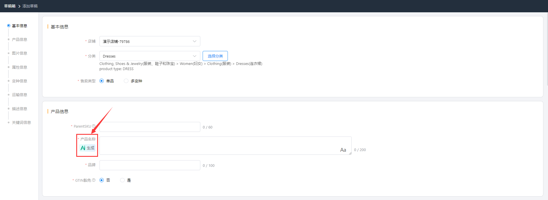 刊登中产品名称、要点、商品描述的限制⾃动带到Listing⽂案⽣成中