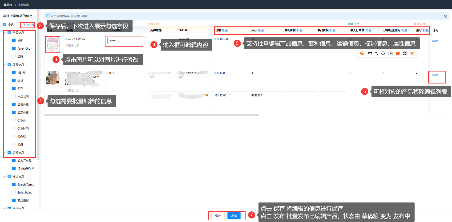 点击“批量编辑”,支持同时对多个SKU进行快速编辑以及发布