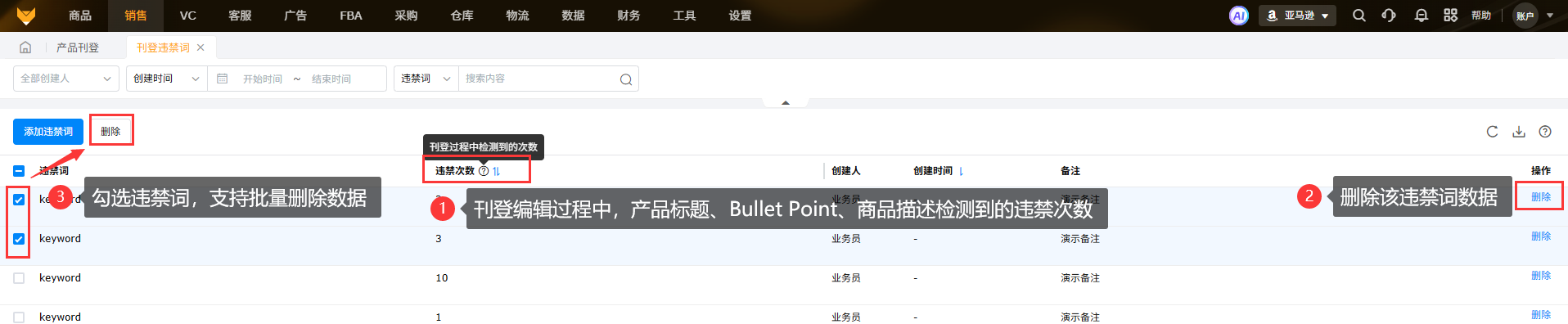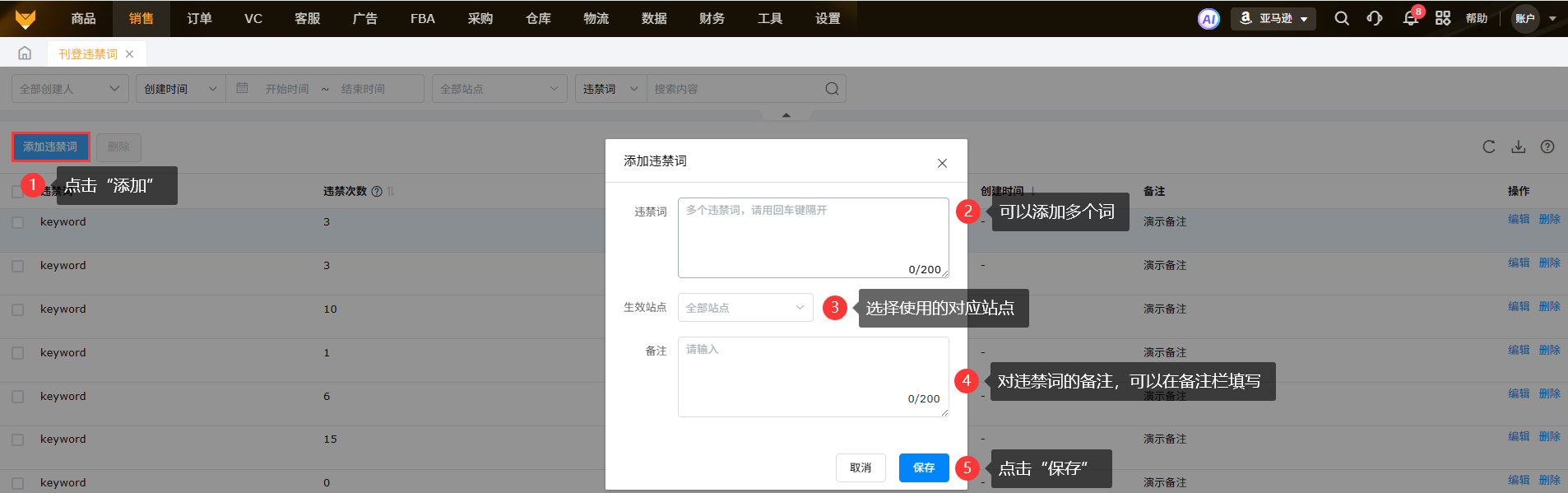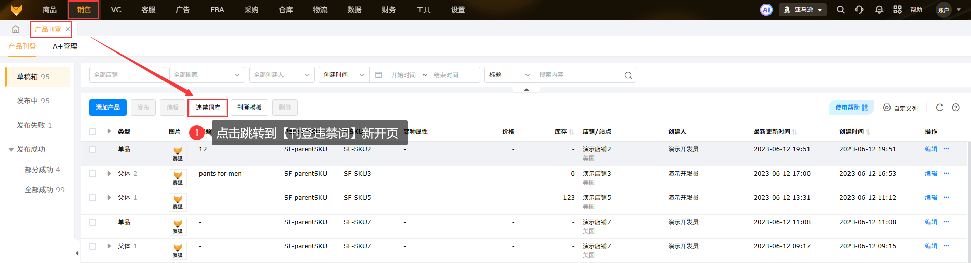 刊登时可以自动检测违禁词,检测时不区分违禁词大小写。