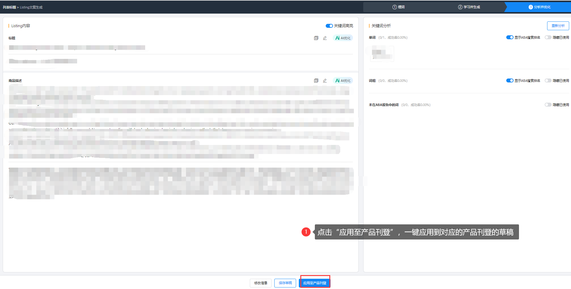 (2)点击“应用至产品刊登”,一键应用回对应的产品刊登的草稿