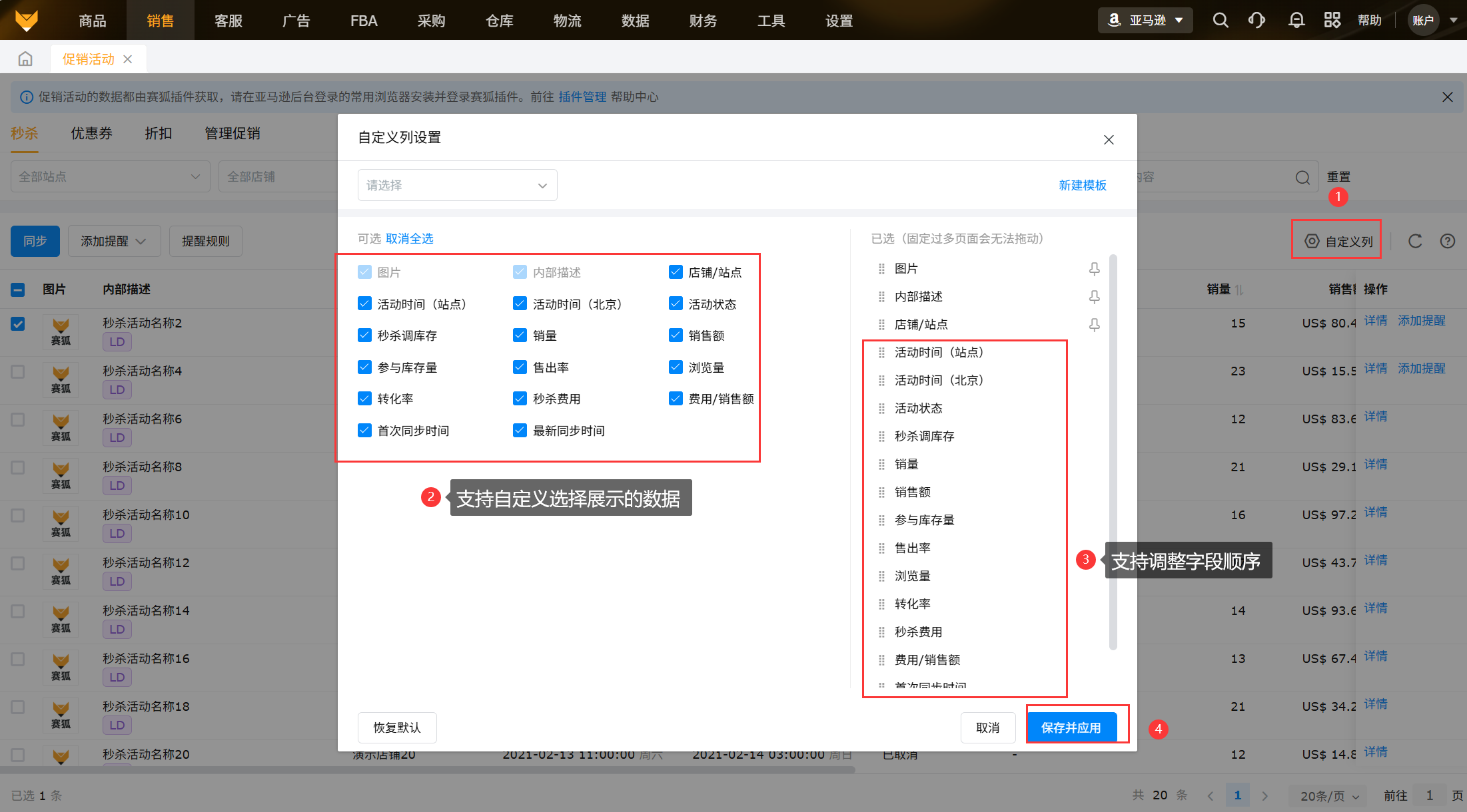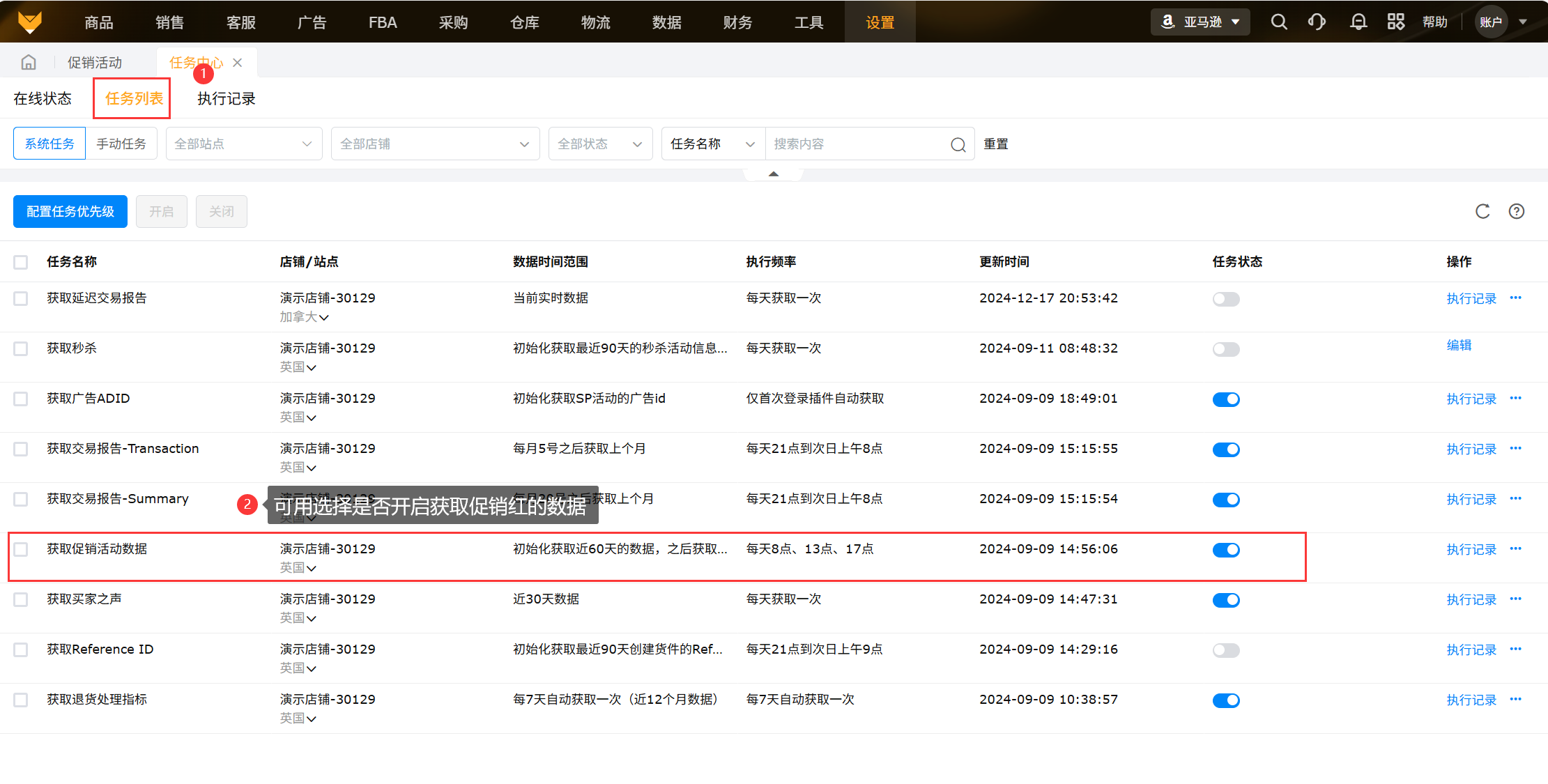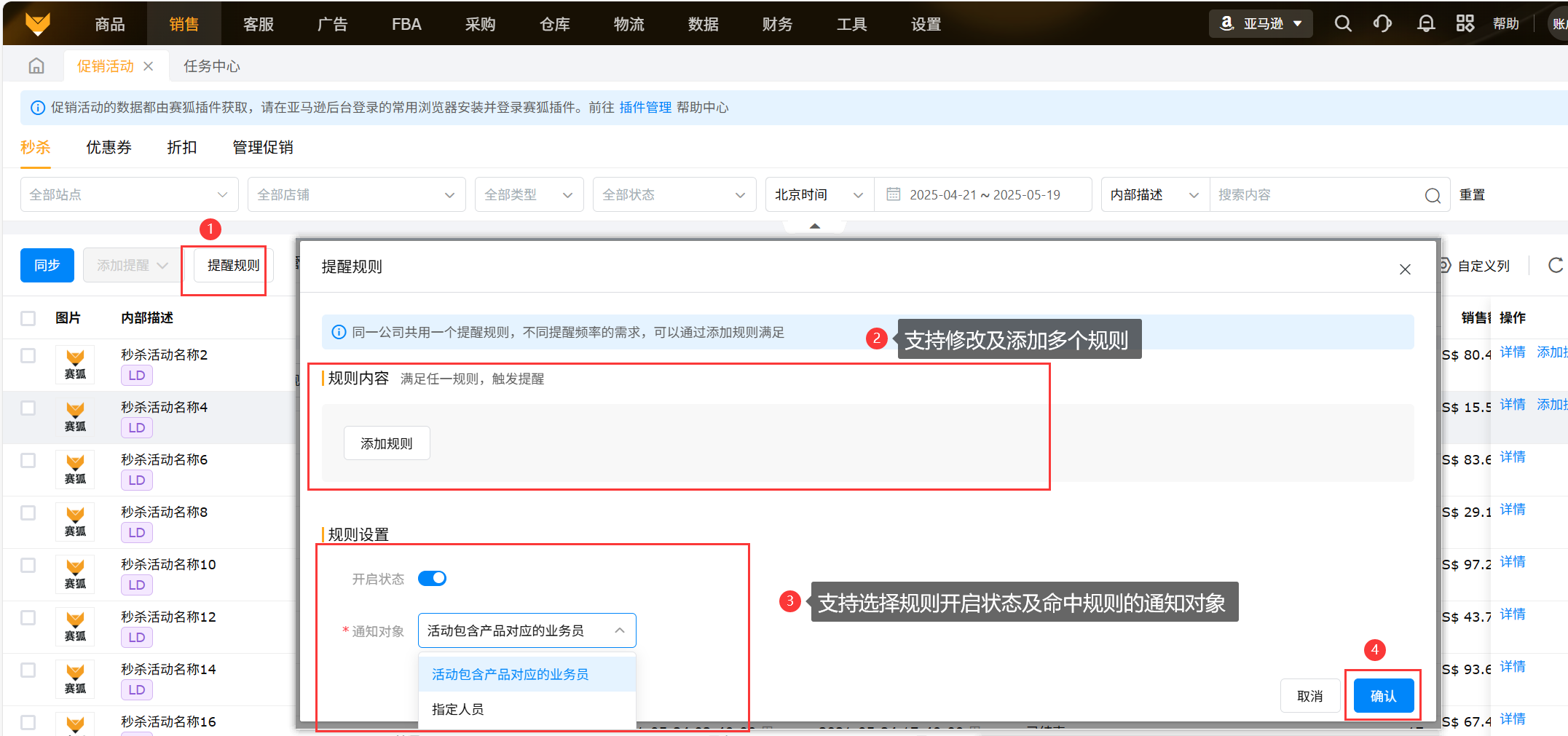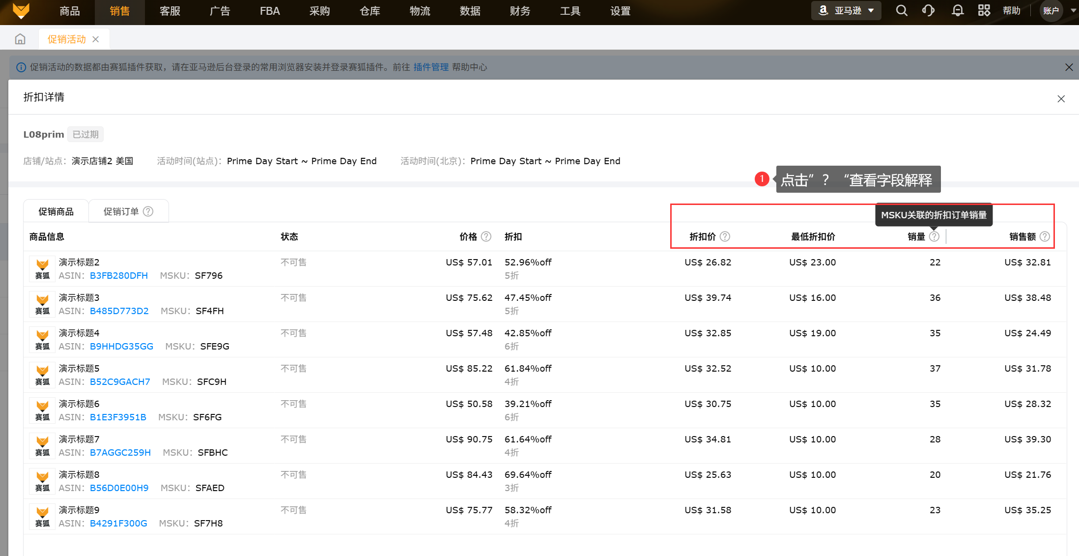 数据来源:促销活动的数据都由赛狐插件获取,需要保持亚马逊店铺和插件同时在线;