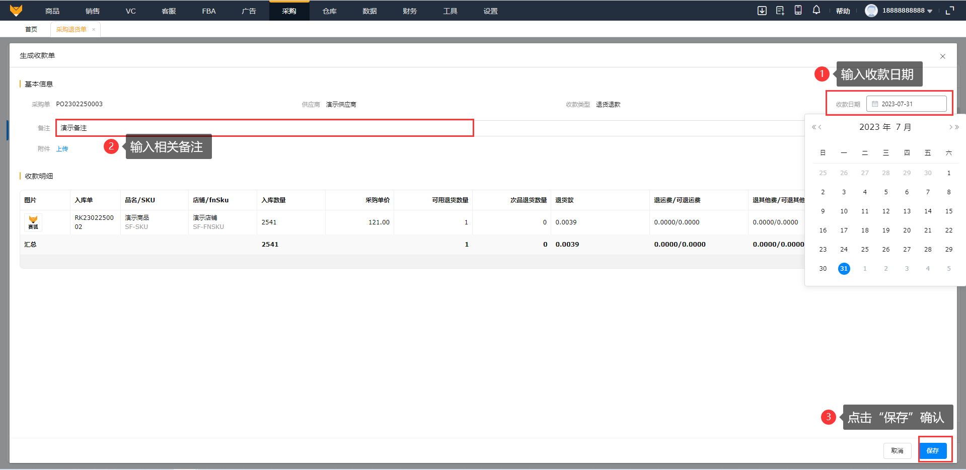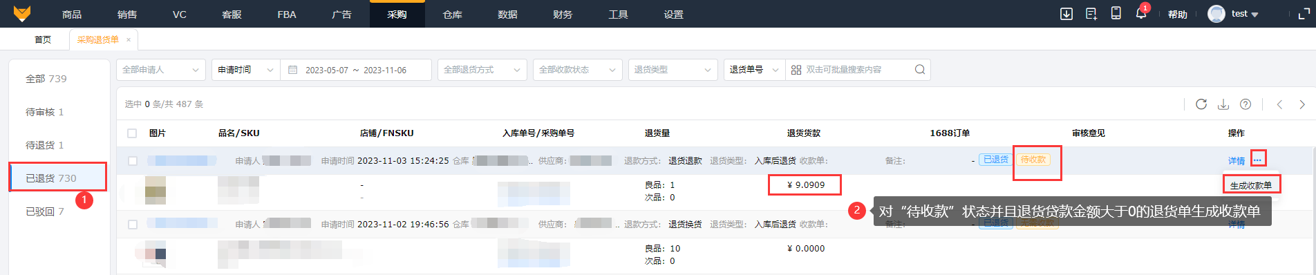 A2:因为这个采购单还没进行请款。需要付款给供应商的采购单才会有退货款。