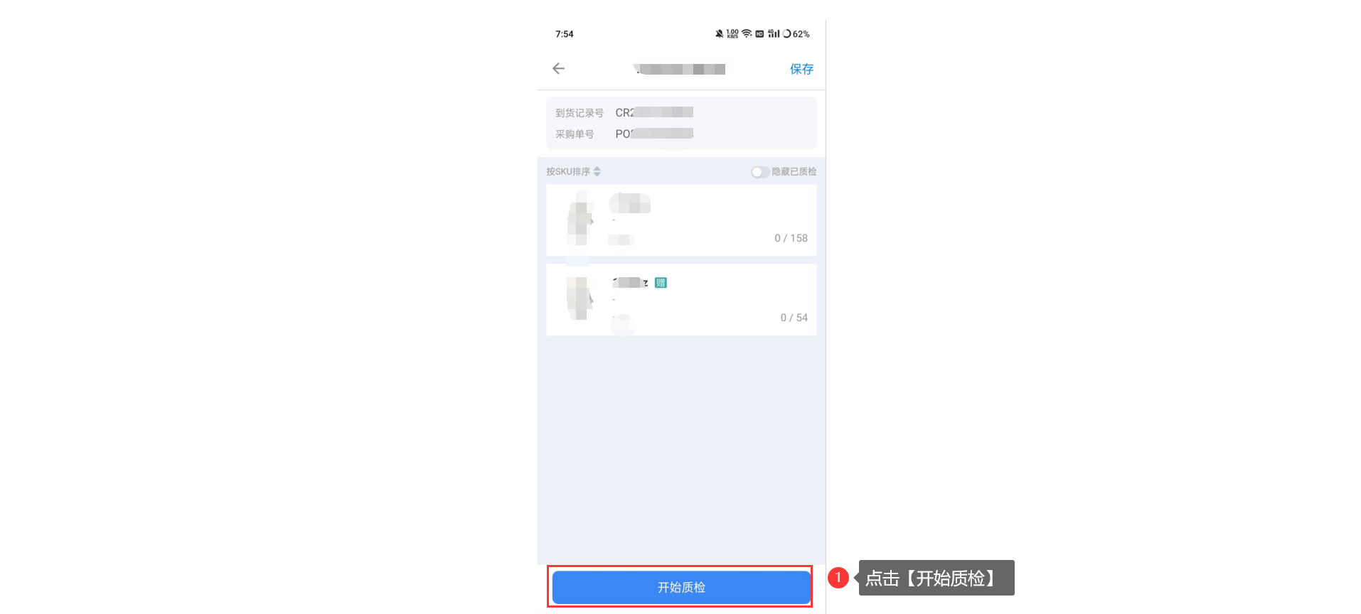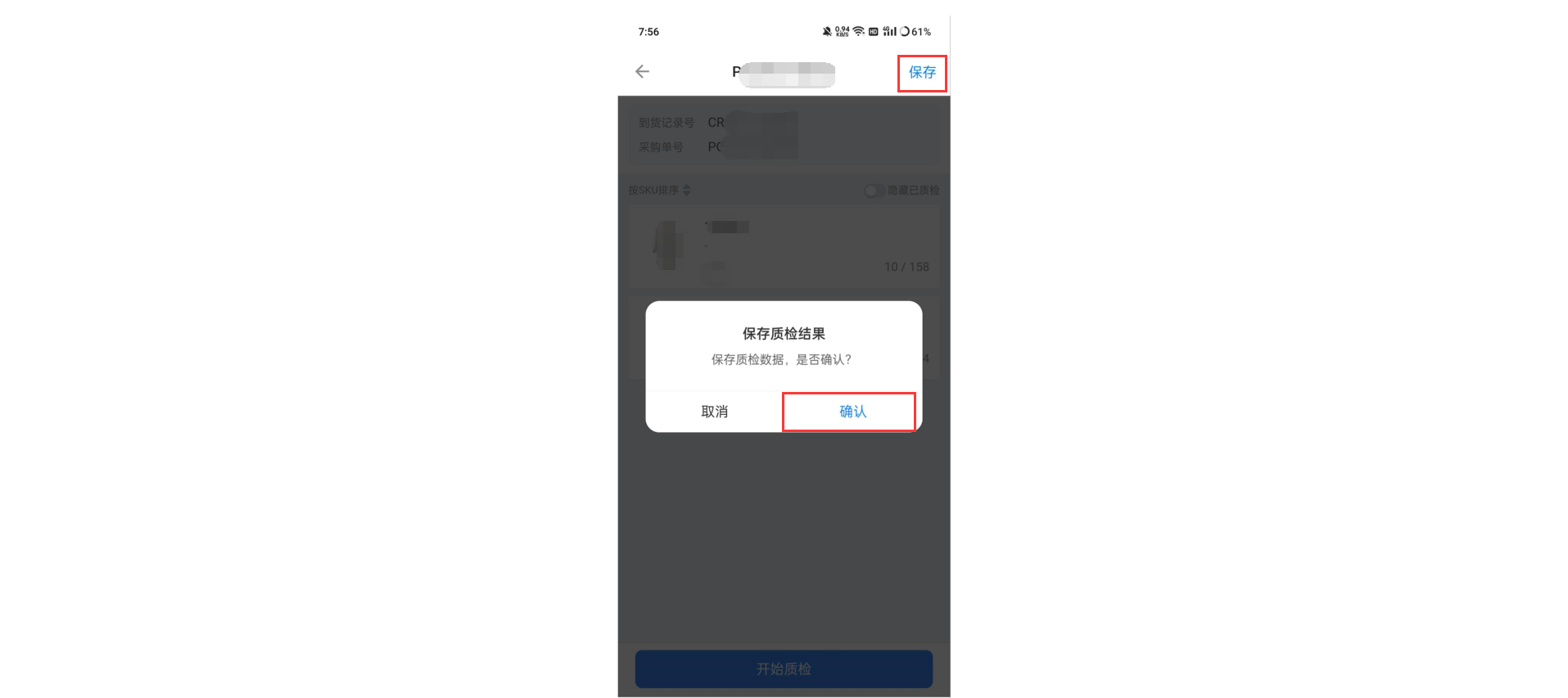 当单据中商品都完成质检后,可点击保存,完成对应质检单的质检