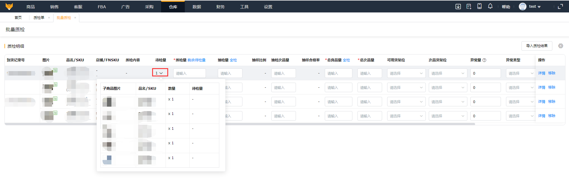 注意:假如没有在这里开启“质检流程”,该商品就不能进行质检操作。