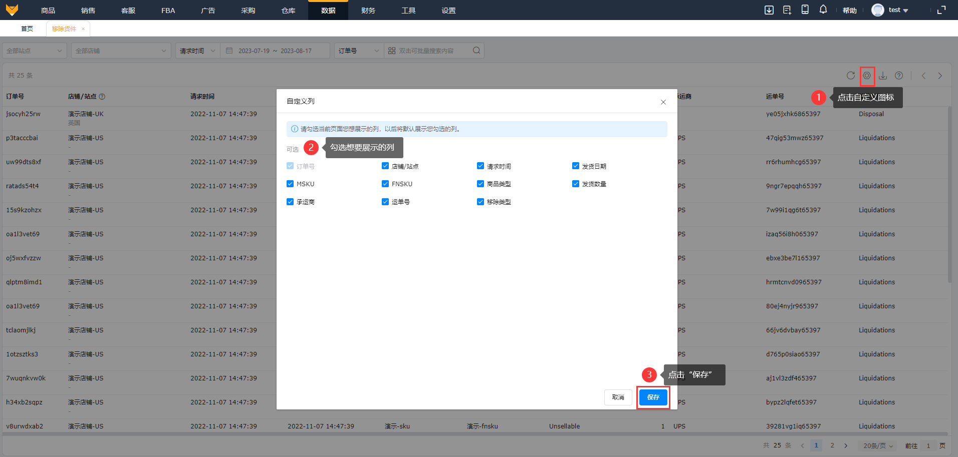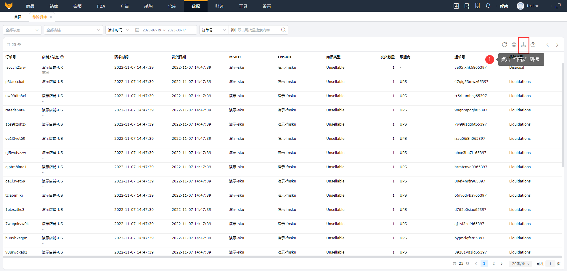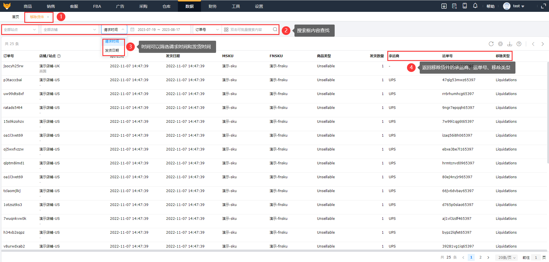 可根据店铺、日期、订单号、MSKU、FNSKU等进行模糊搜索获取需要的信息。