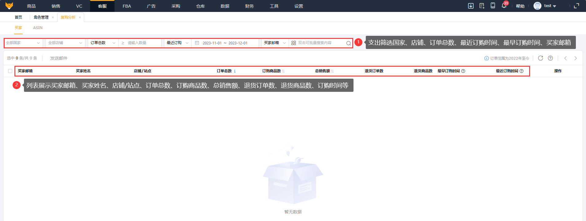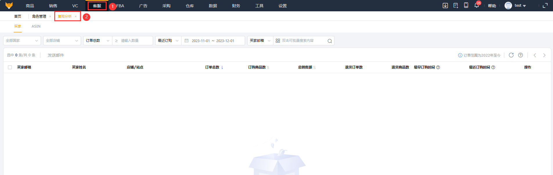 复购分析是以店铺的买家邮箱为基准,统计出买家复购数据,用户可以对复购买家进行筛选、分析、发邮件。帮助企业改善产品质量、维护客户关系、提升市场竞争力和减少成本,从而实现可持续发展和增加企业利润。