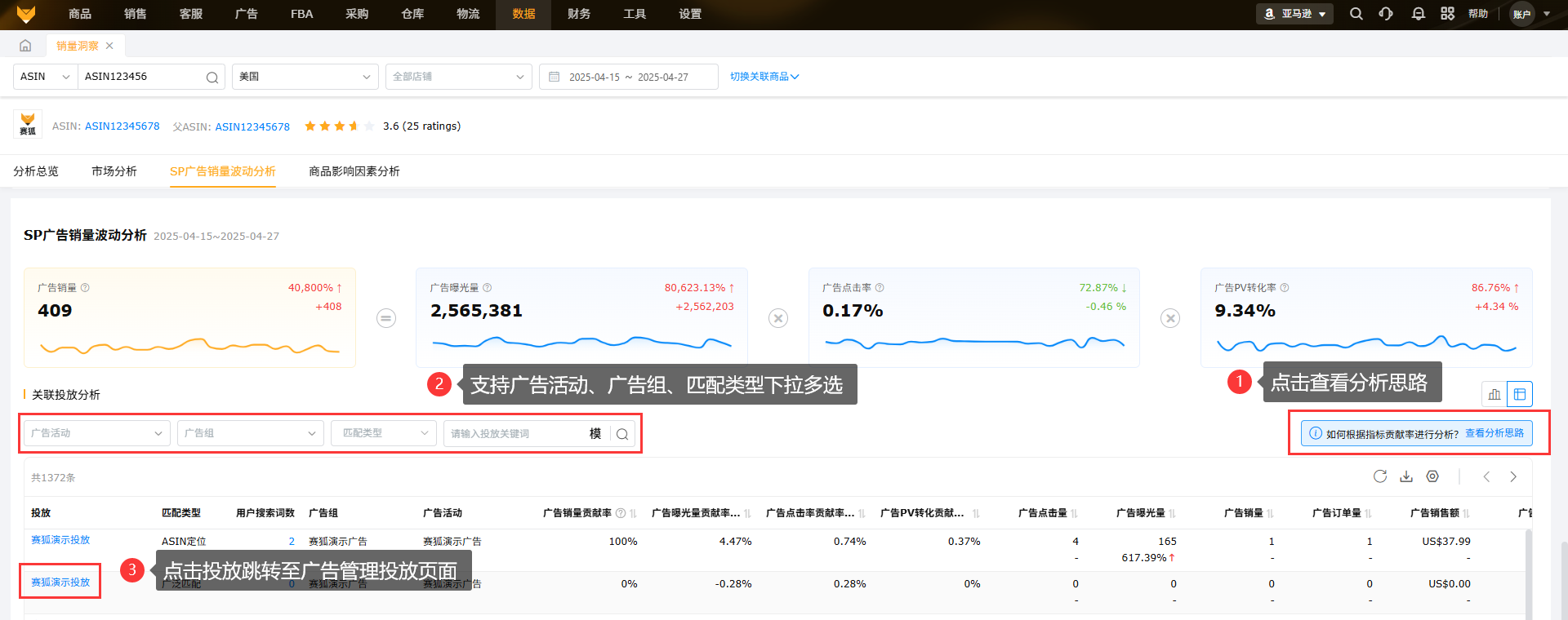 结合市场、广告、竞品的情况,整合数据,帮助用户迅速定位销量波动的最核心原因,给出分析建议,让运营的每一步动作都有据可依。