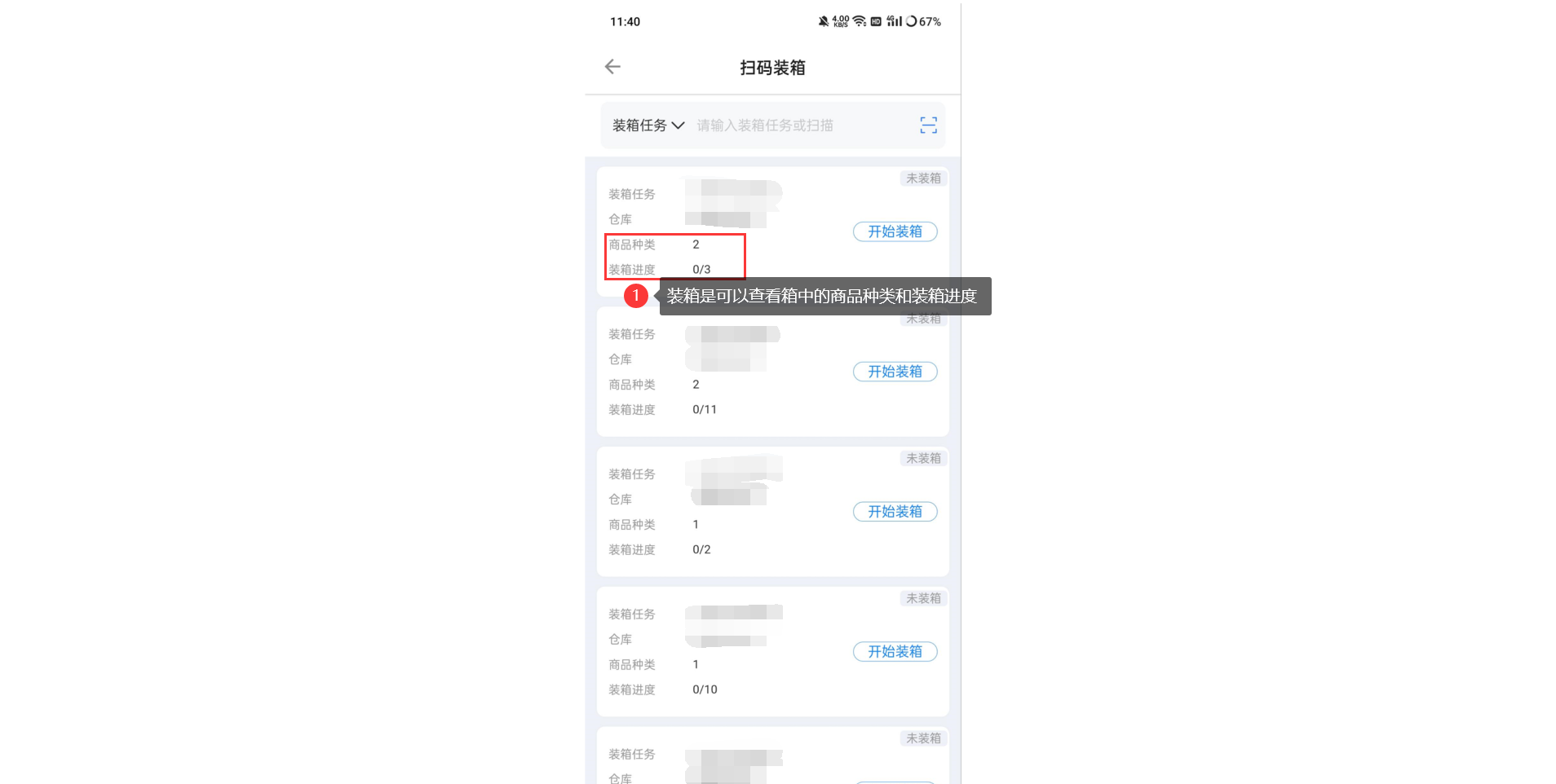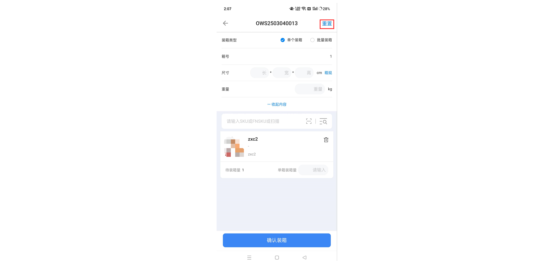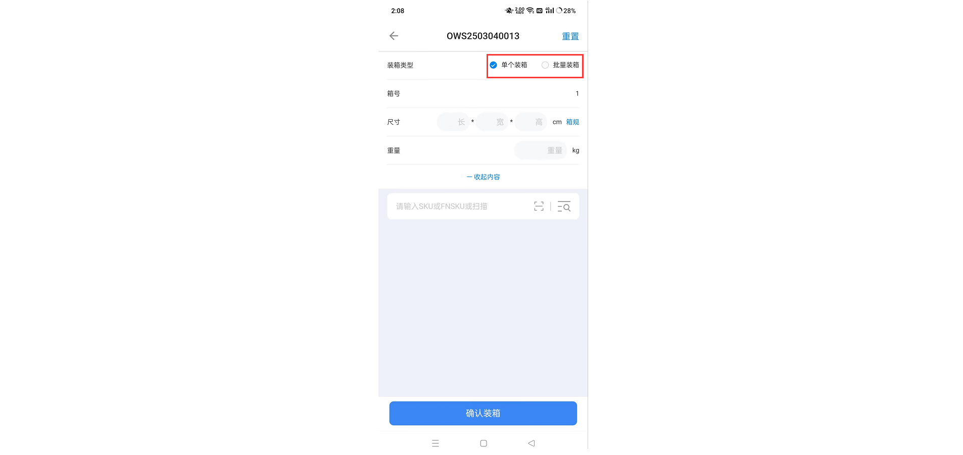 1.4 点击【开始装箱】,进入装箱操作页面填写装箱信息