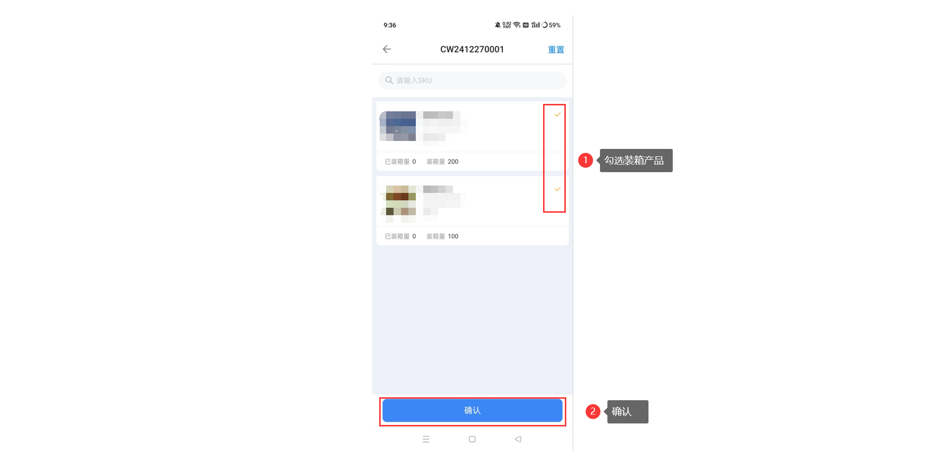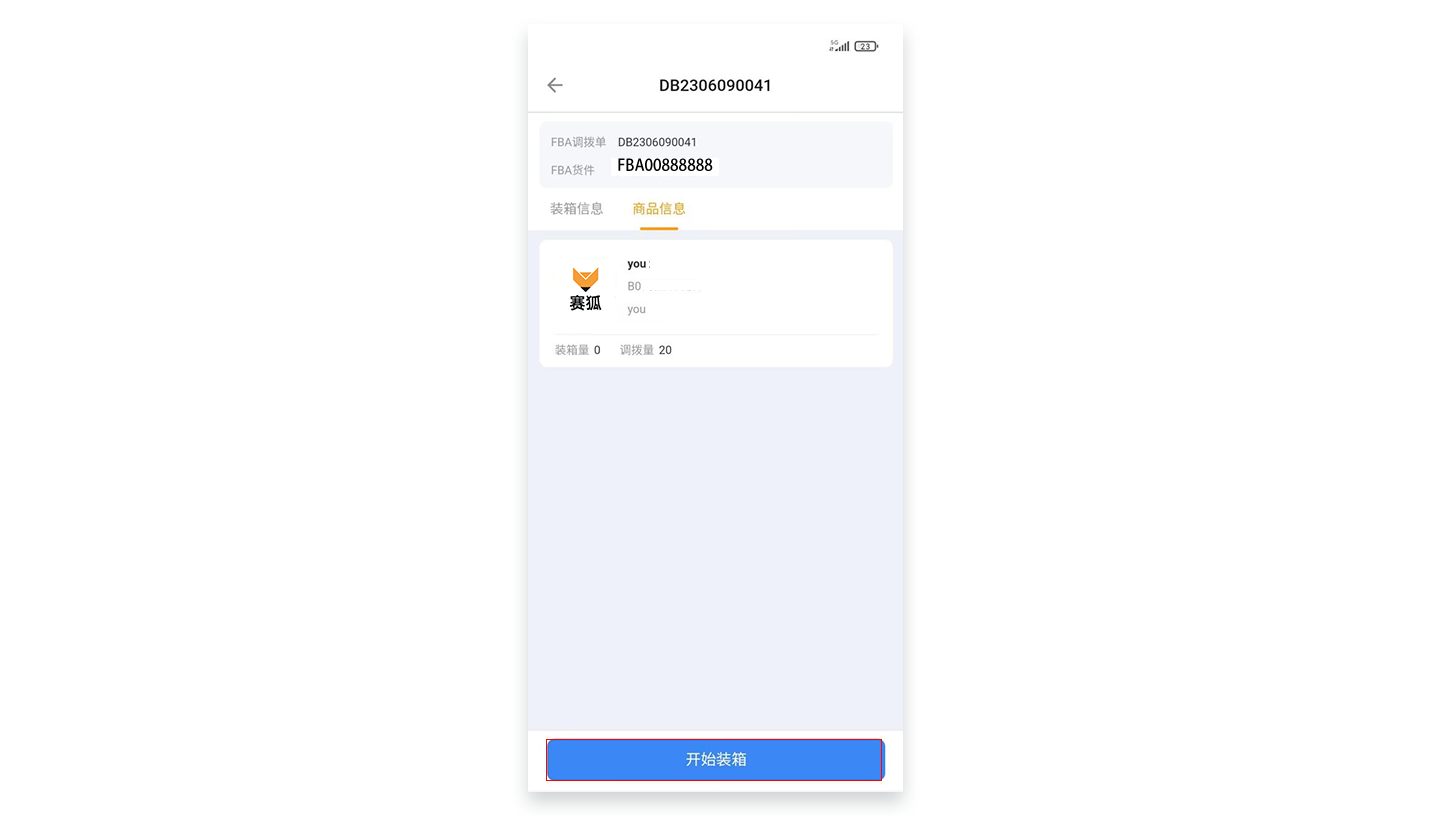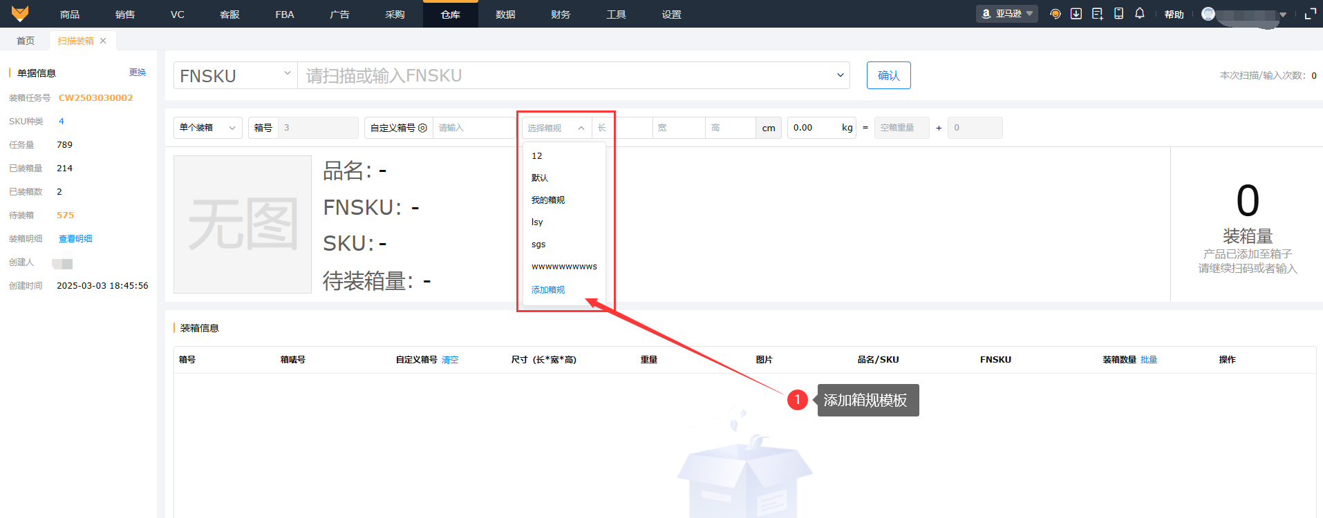 输入或扫描单据,支持FBA调拨单,海外仓备货单,装箱任务的装箱。